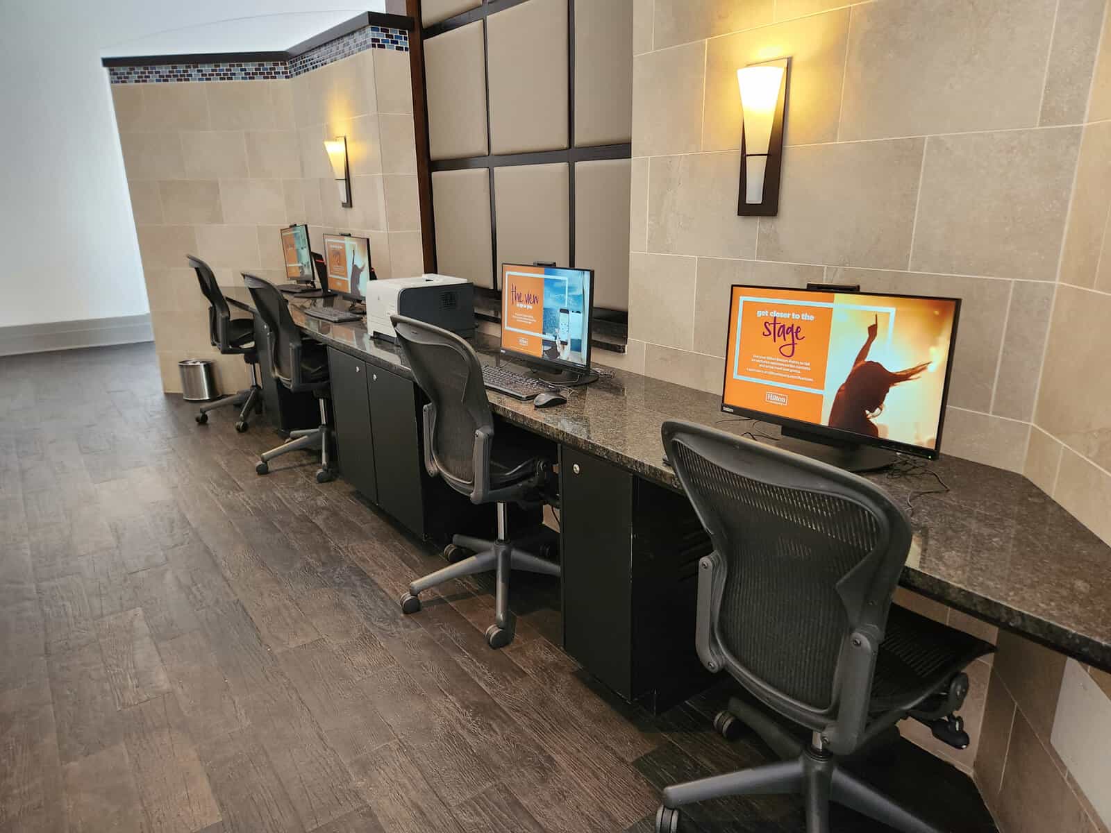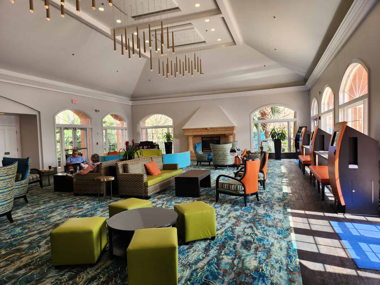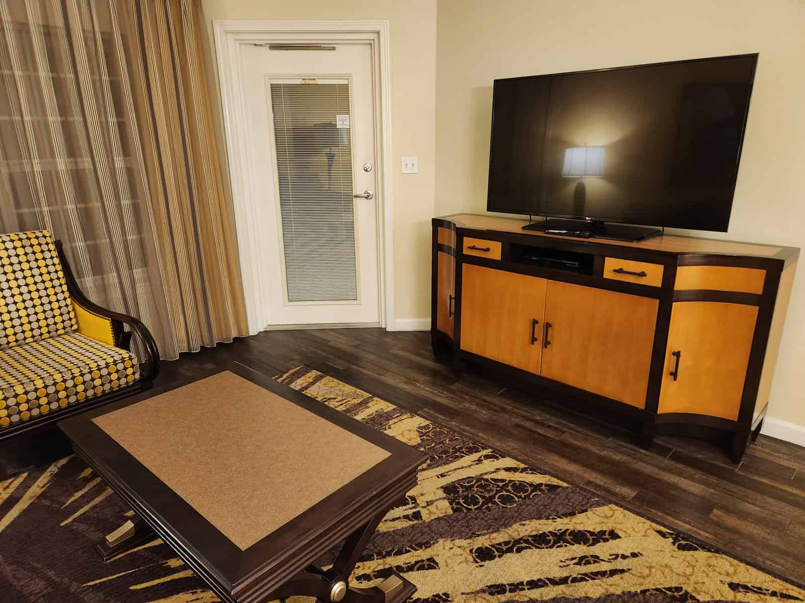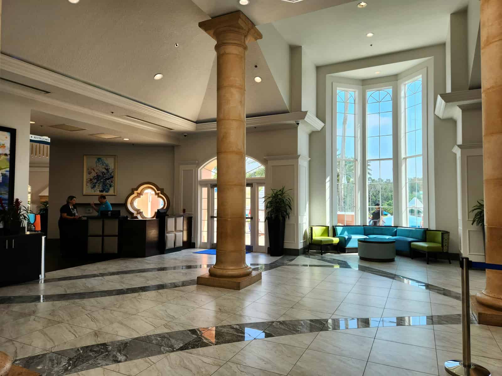 La réception est lumineuse et comprend un joli coin salon avec de nombreux canapés, une cheminée et des terminaux informatiques que les clients peuvent utiliser. L’enregistrement a été rapide et on nous a remis les clés de notre suite située dans un bâtiment voisin. En tant que membre Hilton Diamond, j’ai reçu quelques points bonus pour notre séjour, mais à part cela, il n’y a pas beaucoup d’avantages dans les clubs de vacances pour les membres Élite.