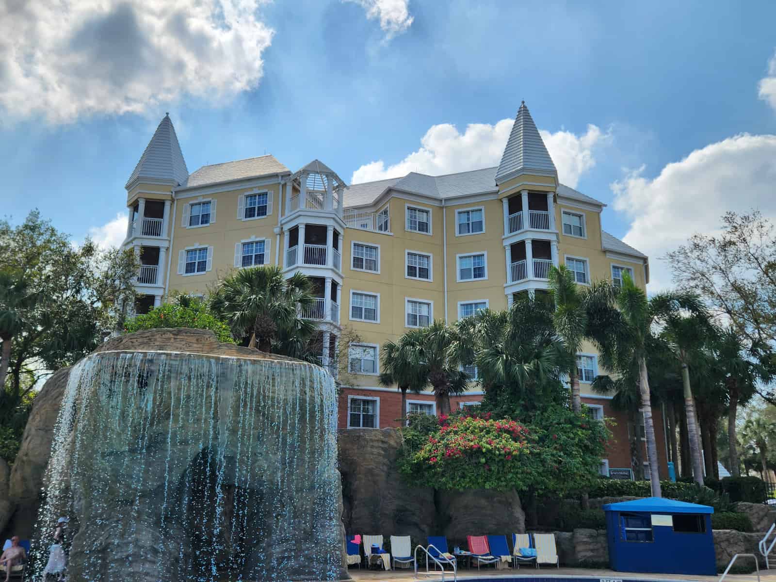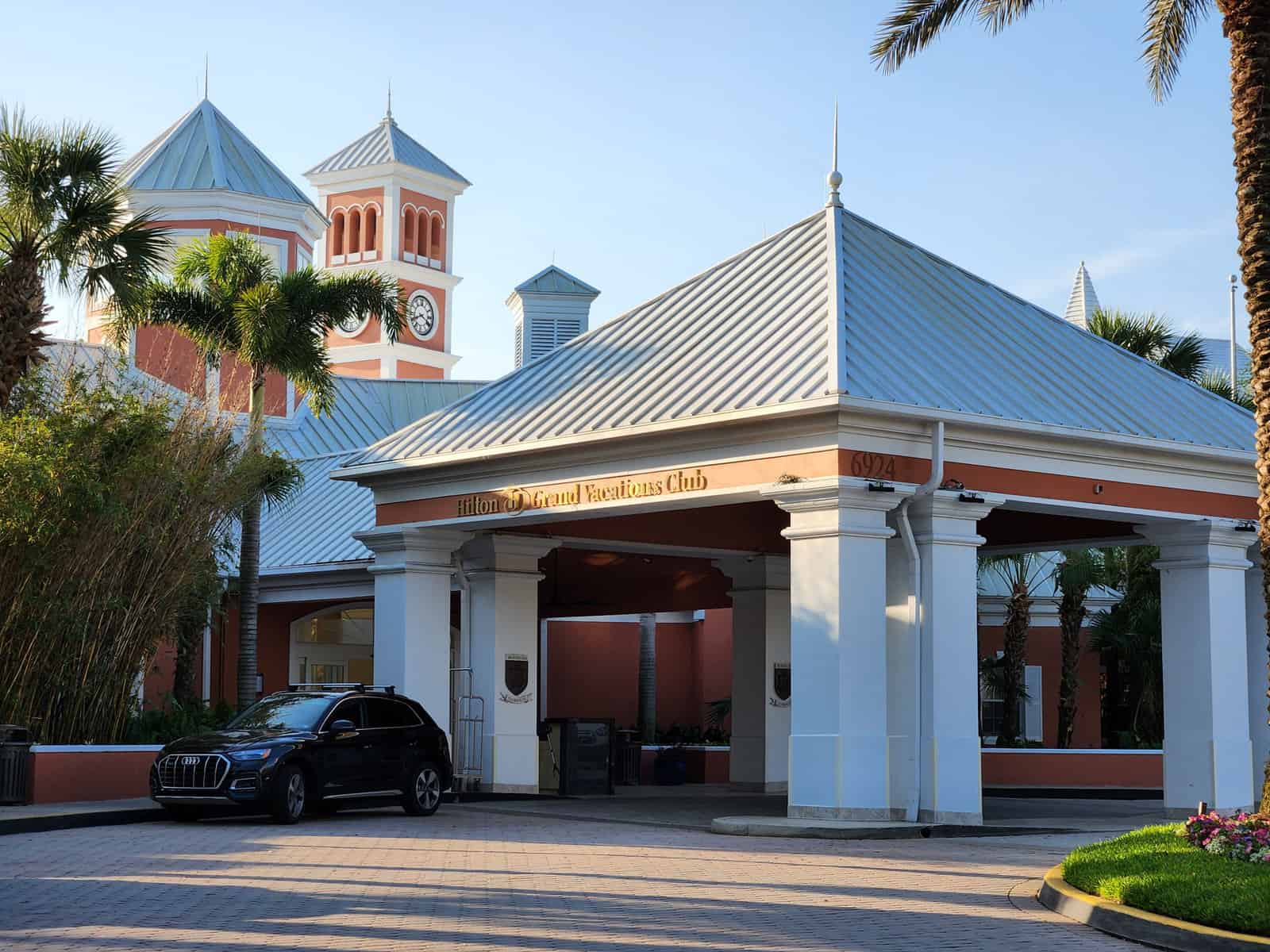 L’entrée et le terrain de l’hôtel sont modernes et bien entretenus, dans le style habituel de la majorité des clubs de vacances de la région d’Orlando.
