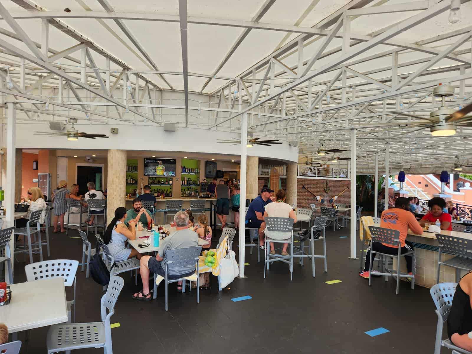 Comme la plupart des clubs de vacances, le Hilton propose des options de restauration simples, car la plupart des gens cuisinent dans leur propre chambre avec leur cuisine complète. Le bar et grill s’appelle le Coral Reef et propose un menu complet ainsi qu’une longue liste de cocktails et d’autres boissons. Nous y avons mangé une fois et la nourriture était excellente. Il y avait également un marché sur place pour se ravitailler et une bonne sélection de produits de boulangerie pour le petit-déjeuner et les desserts.