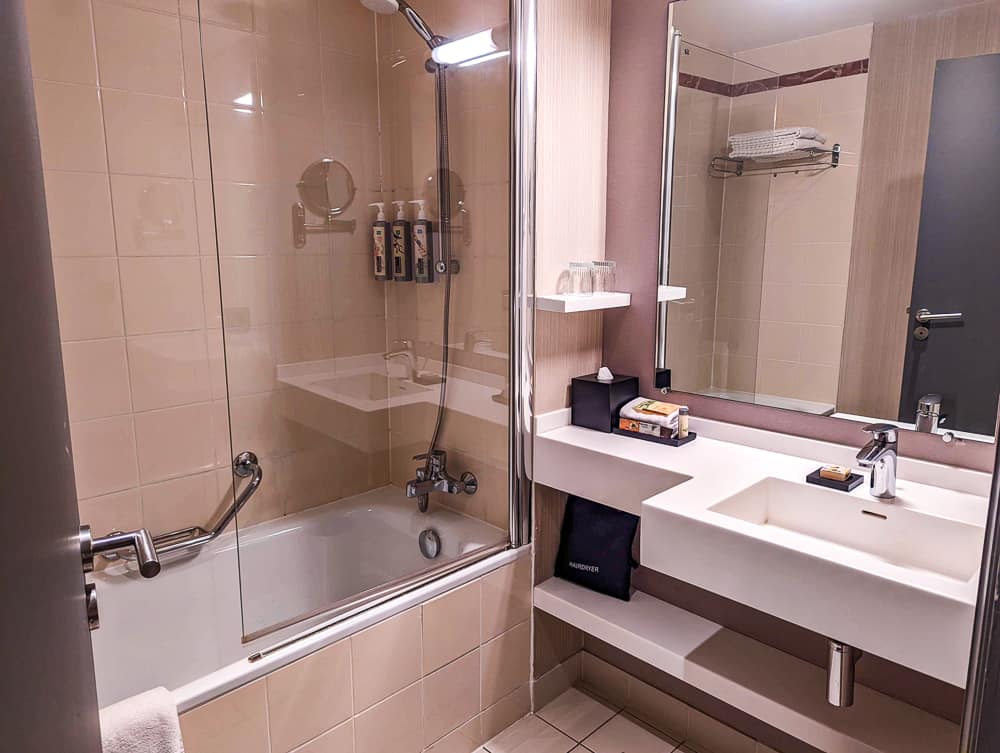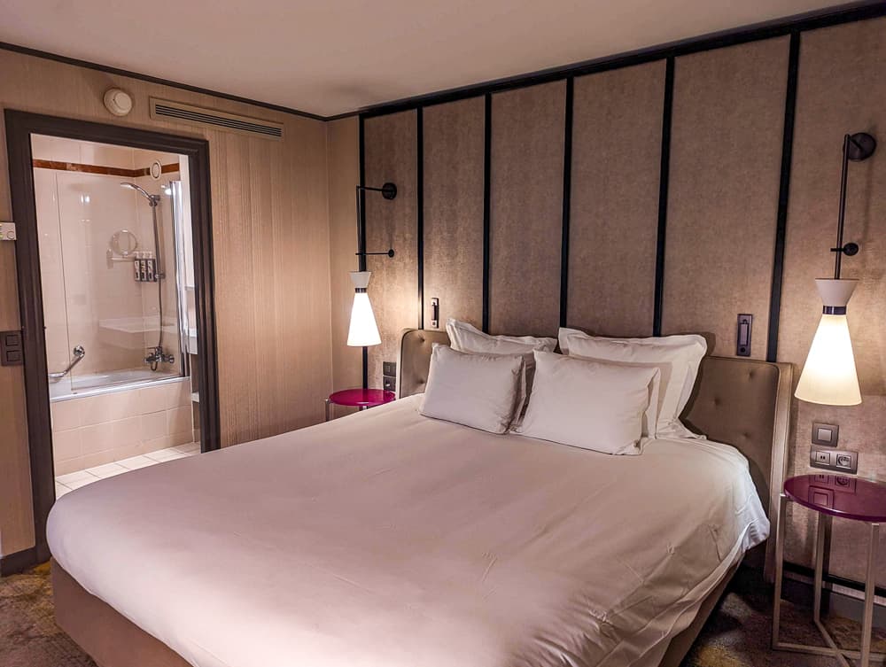 Toutefois, pour Paris et plus particulièrement La Défense, notre chambre était quasiment aussi grande qu’un petit appartement, avec son lit king, espace bureau, salle de bain avec w.c. séparée.