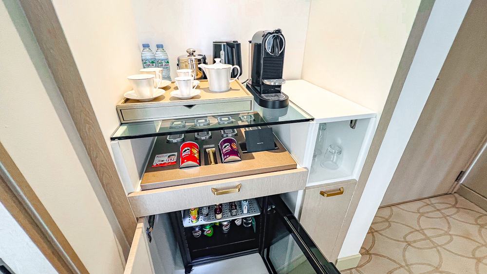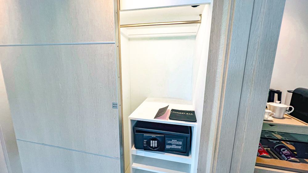 La suite présente une terrasse de taille correcte pour accueillir deux chaises et une petite table, ce qui peut être appréciable pour profiter de la marina. Toutefois, nous avons trouvé l’environnement ambiant très bruyant, du fait du bruit de la route ou de la musique venant de la piscine de l’hôtel.