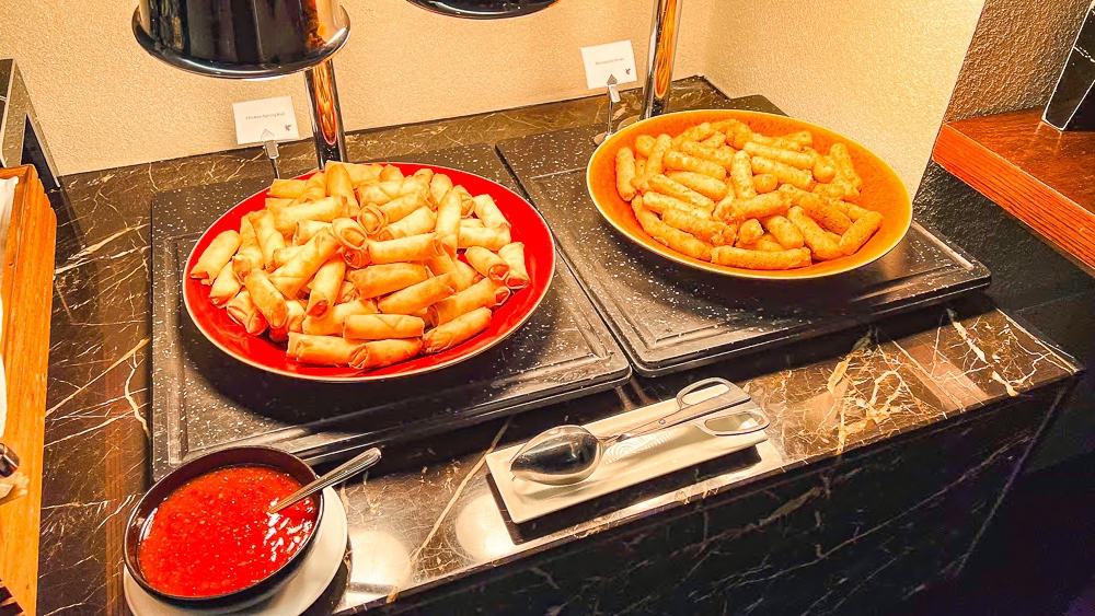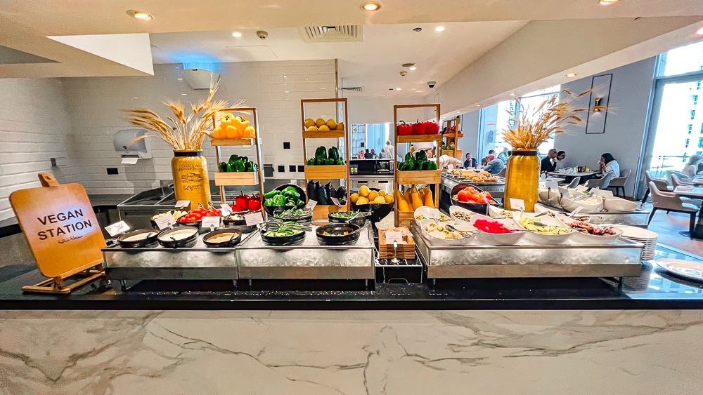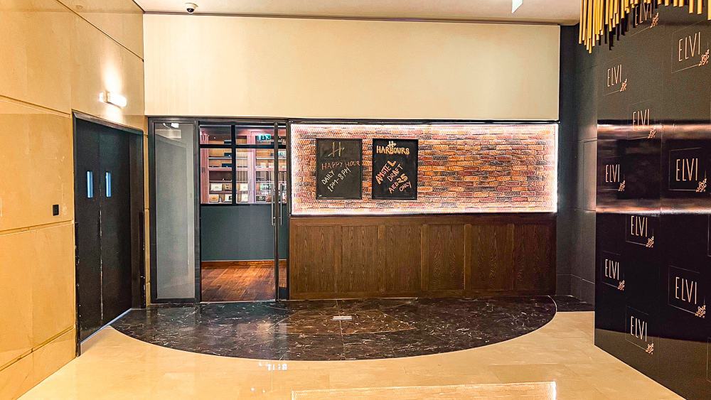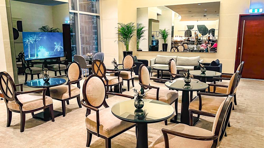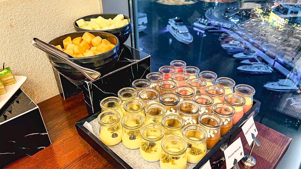 Le salon Elvi est situé au 4e étage et est offert aux membres platinum et plus. Il n’est pas de très grande taille mais à l’avantage d’offr une jolie vue à nouveau sur la Marina avec une petite terrasse extérieure.
