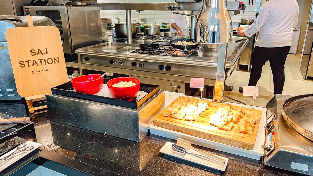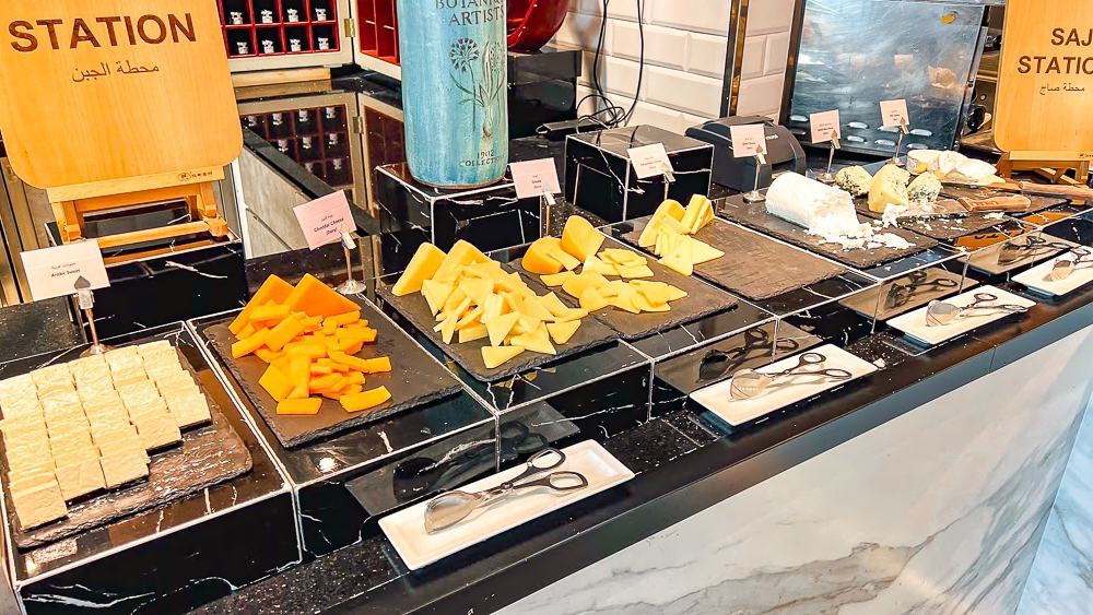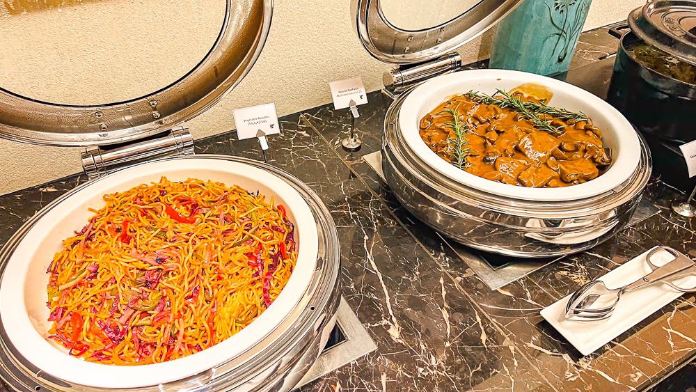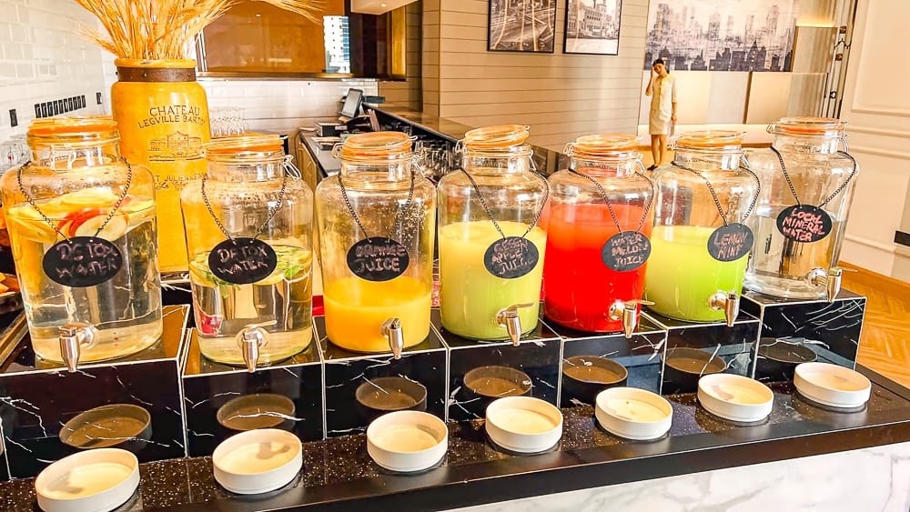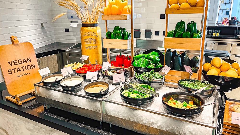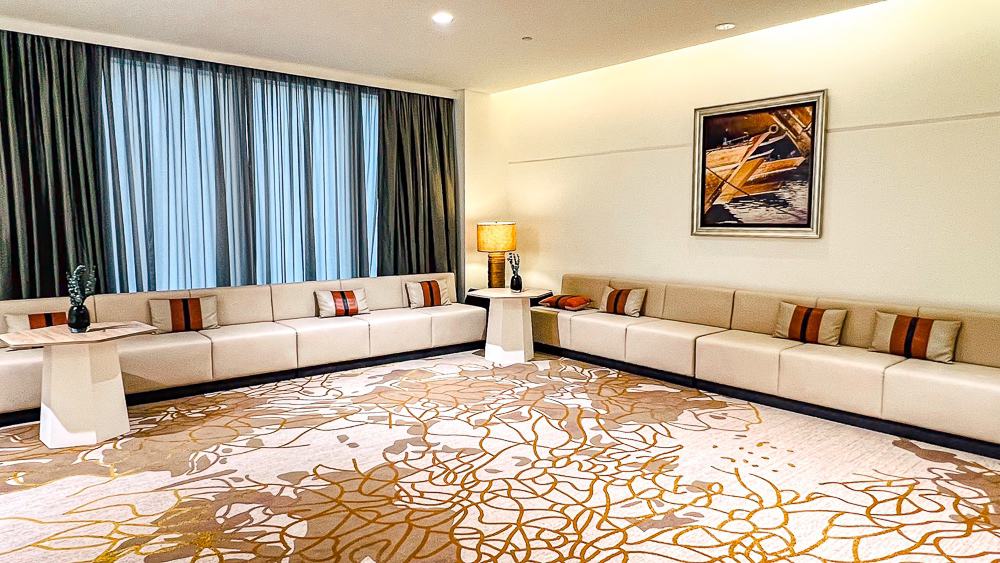 Le salon Elvi est situé au 4e étage et est offert aux membres platinum et plus. Il n’est pas de très grande taille mais à l’avantage d’offr une jolie vue à nouveau sur la Marina avec une petite terrasse extérieure.