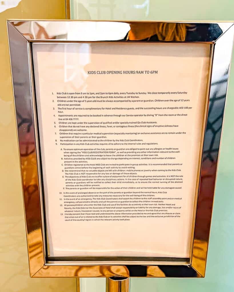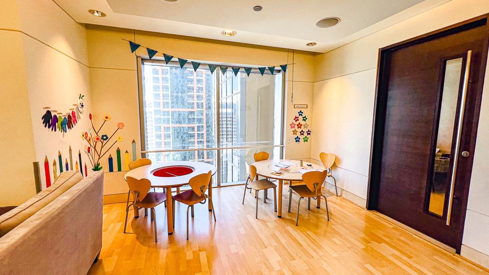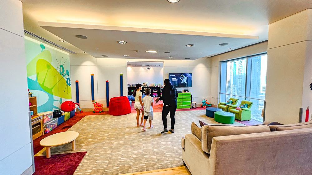 L’hôtel propose les services d’un kids club pour les enfants de 0 à 12 ans. L’emplacement n’est pas idéal comme il faut changer d’ascenseur et utiliser celui des résidents de l’immeuble. L’hôtel appartenant depuis peu au groupe Marriott, les indications pour s’y rendre n’étaient pas claires. On monte à un étage qui semble dédié à des bureaux pour ensuite trouver une porte en verre sur la droite où il est inscrit Kids Club.