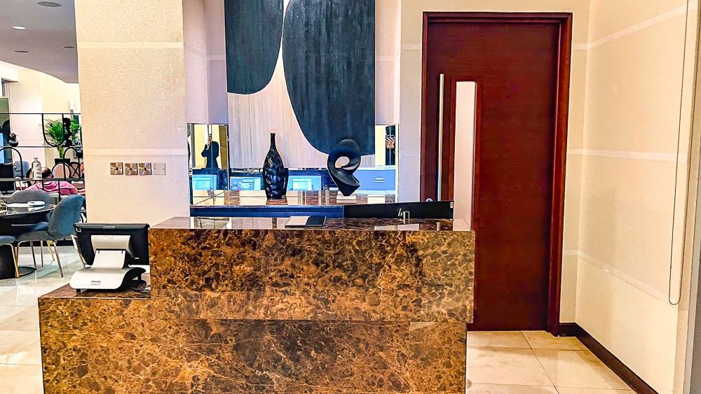 L’expérience d’enregistrement fut assez rapide pour nous, étant les seuls au comptoir à cet instant là. Plusieurs comptoirs sont mis à disposition ainsi qu’à l’entrée de l’hôtel même, un service de conciergerie et valets.
