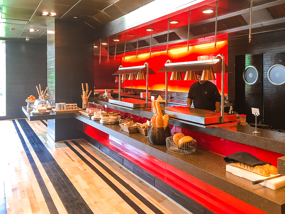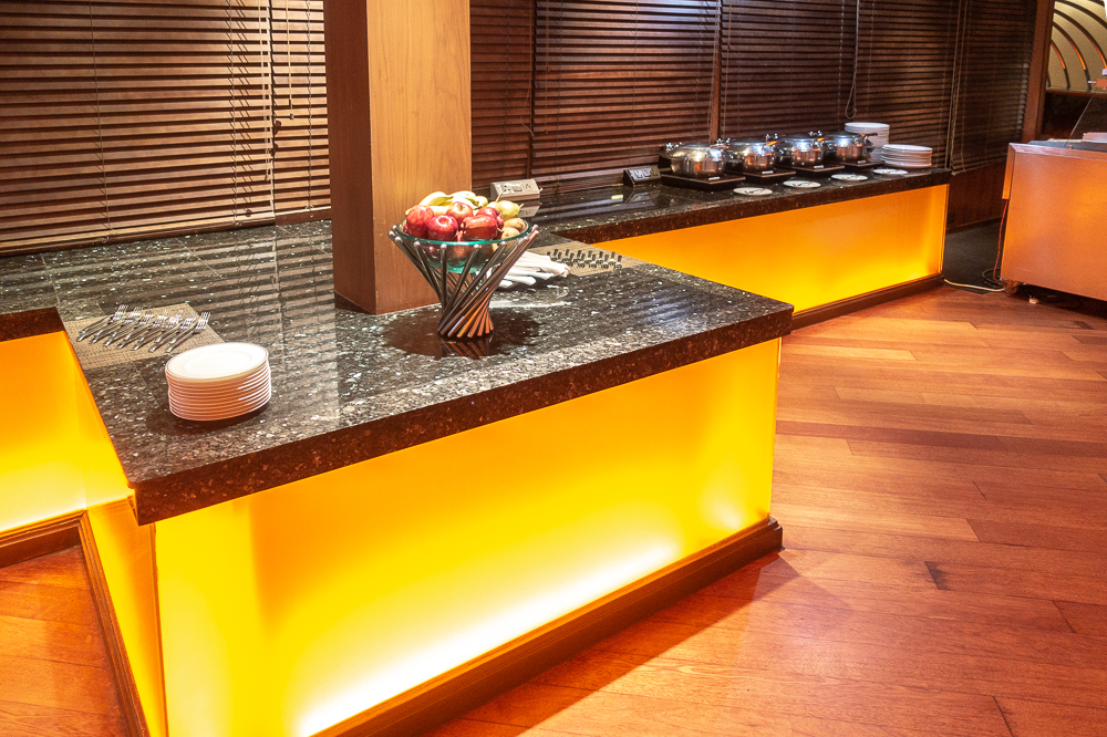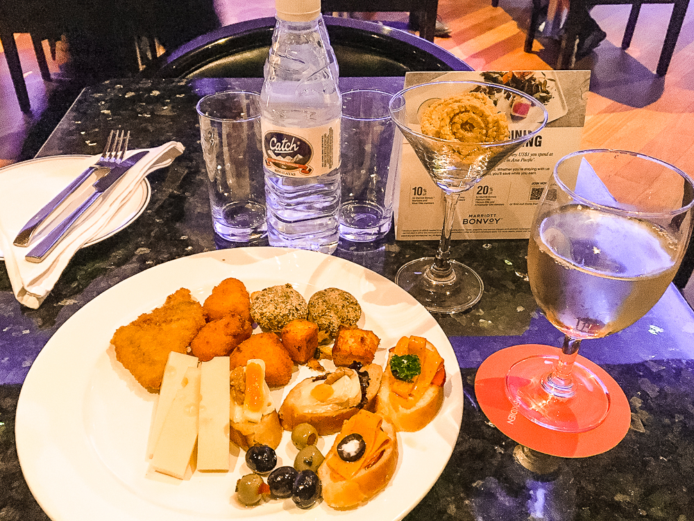 Grâce à mon statut Marriott Bonvoy Elite Titanium, j’ai pu accéder au salon exécutif situé au 19e étage et suspendu au-dessus de l’imposant atrium de l’hôtel. On y accède d’ailleurs par une passerelle lui conférant ainsi un style très « VIP ».