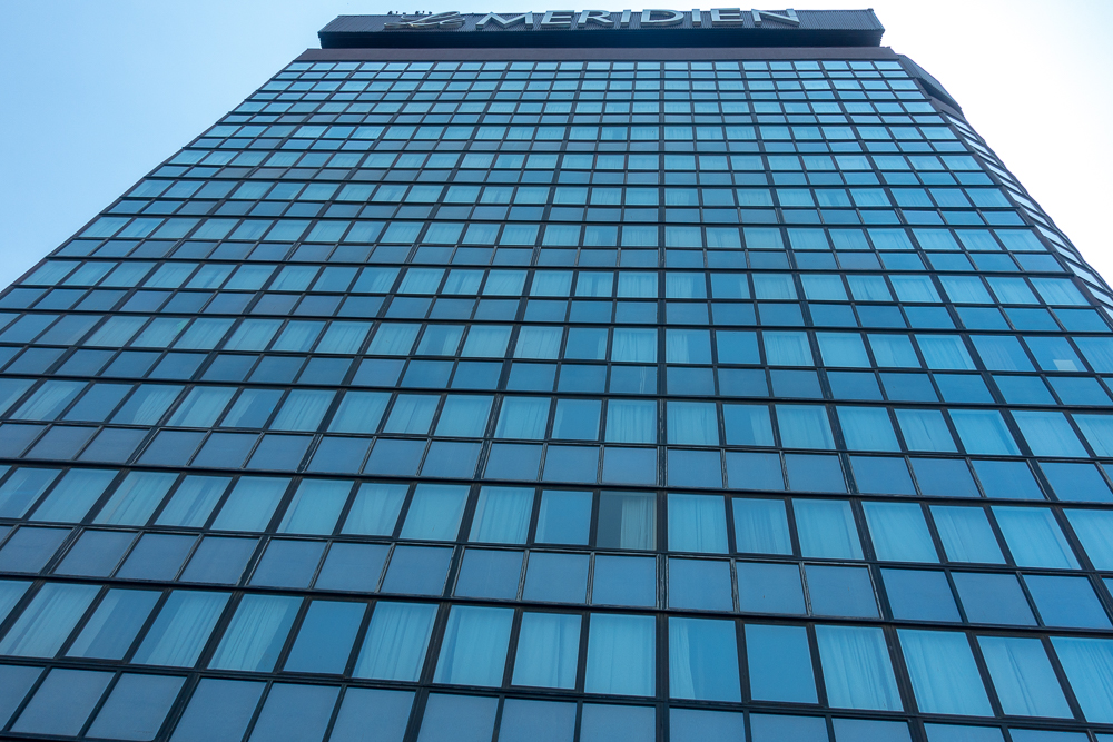 Le complexe hôtelier de 358 chambres est imposant et l’atrium, avec ses quatre ascenseurs vitrés qui font les allers-retours entre les 19 étages, impressionne.