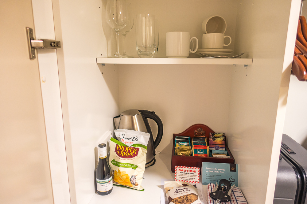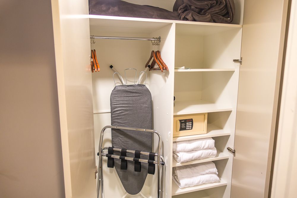 Outre cela, nous avions tout le nécessaire : draps, coffre, table à repasser. Pas de machine à café mais une bouilloire avec du café soluble et sachets de thé, et des petits en-cas au besoin (en surplus bien-sûr).