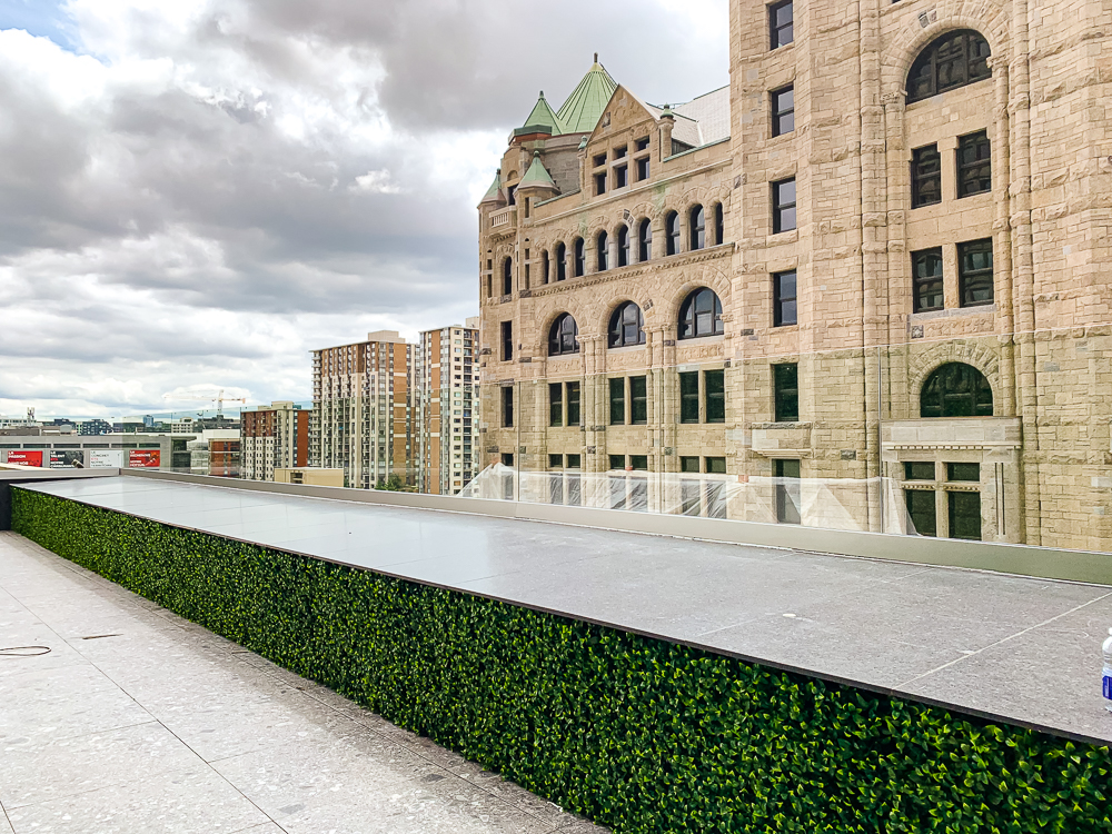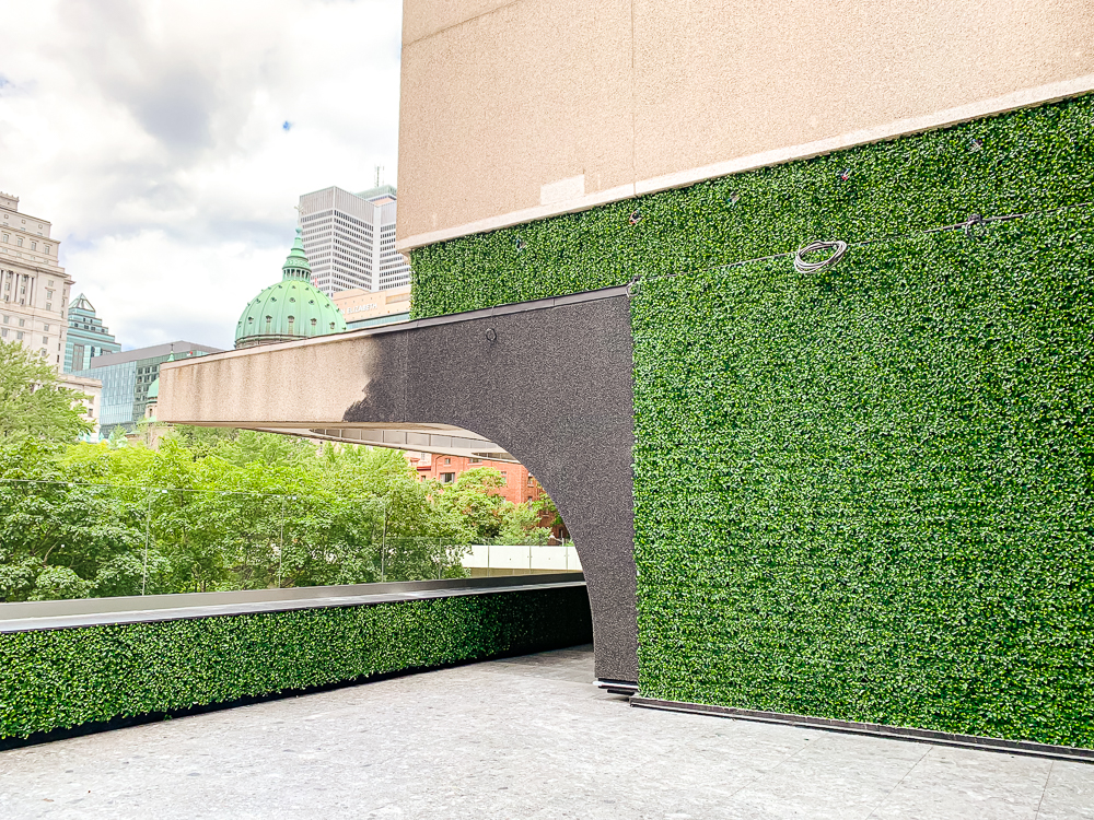 Cette esplanade accueille jusqu’à 175 personnes, qui auront le plaisir de savourer la vue panoramique. Imaginez les tables et les chaises disséminées ici et là, tout près des murs verts.