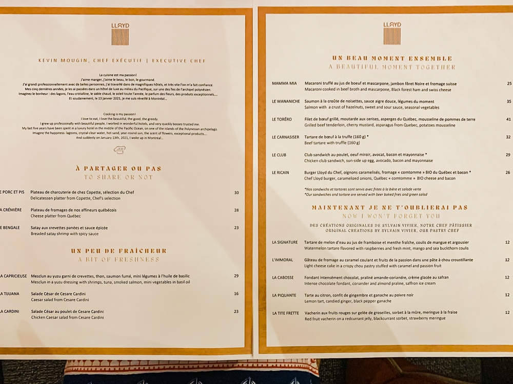 Au restaurant Lloyd, je vous recommande grandement le pain doré brioché caramélisé au sirop d’érable et noix de pacanes. C’est une recette de la grand-mère du chef exécutif Kevin Mougin et c’est tout simplement décadent.