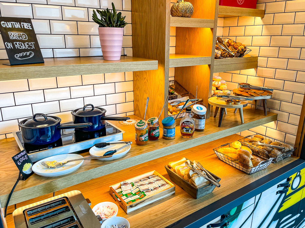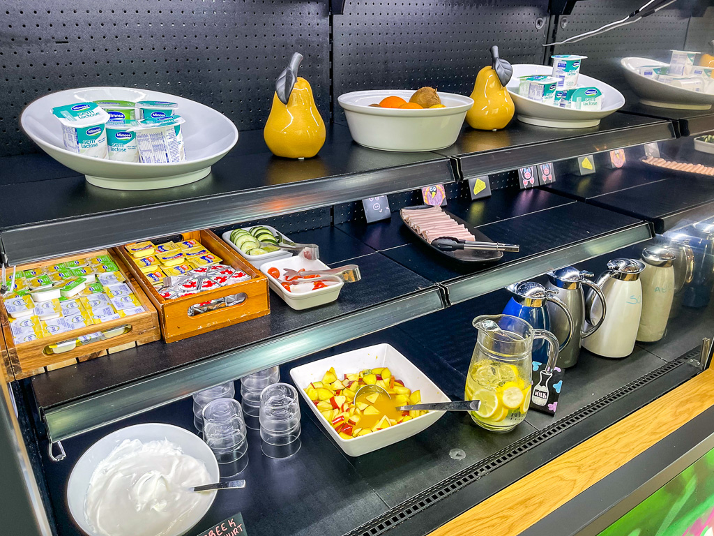 Le petit-déjeuner est sous la forme d’un buffet. Le coût est de 10 euros par personne. En tant que membre Titanium, un coupon de 10 euros est offert par jour pour la nourriture, ce qui couvre donc le petit-déjeuner (sinon vous pouvez choisir d’avoir 500 points).