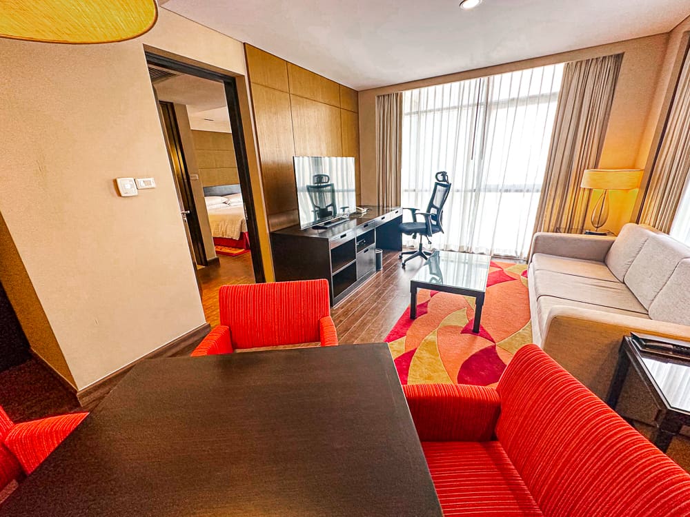 Lors de mon séjour à l’hôtel Sathorn Vista, Bangkok – Marriott Executive Apartments, celui-ci coûtait autour de 130 $ la nuit mais n’était pas accessible avec les points Marriott Bonvoy. De ce que j’ai vu via le calendrier Marriott Bonvoy, celui-ci était disponible à quelques dates aux alentours de 20 000 points Marriott Bonvoy.