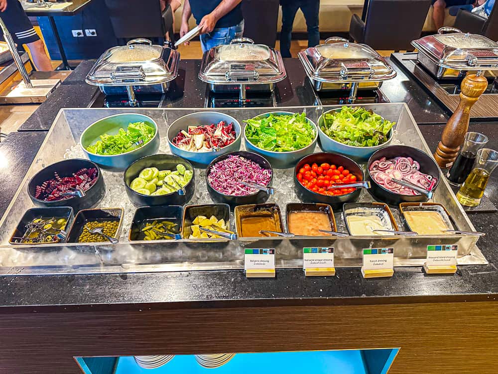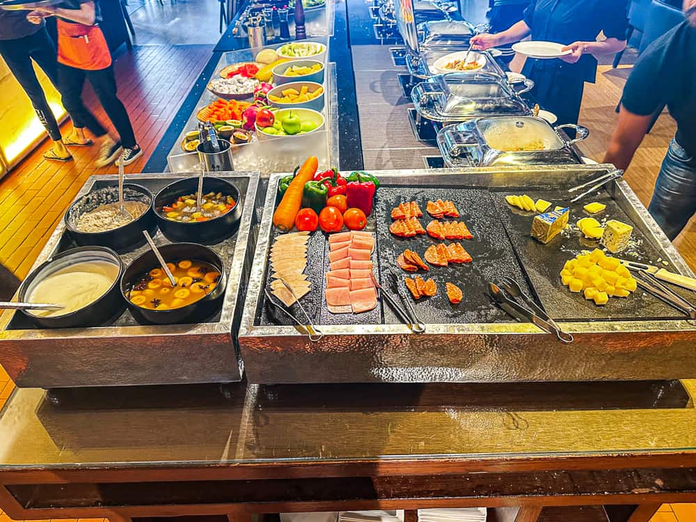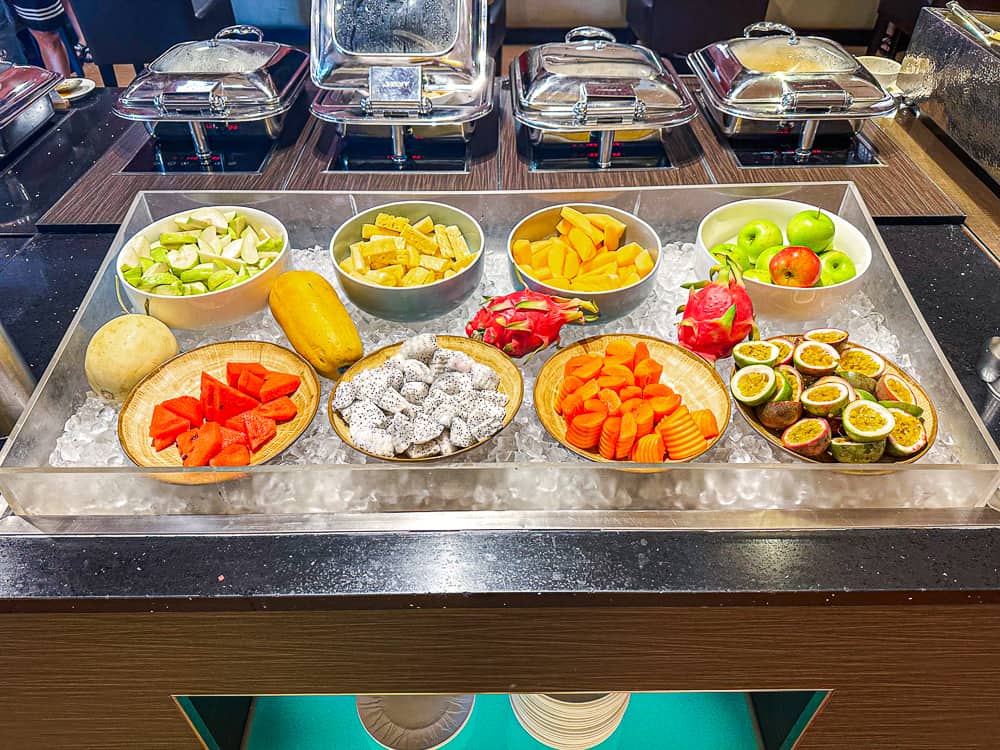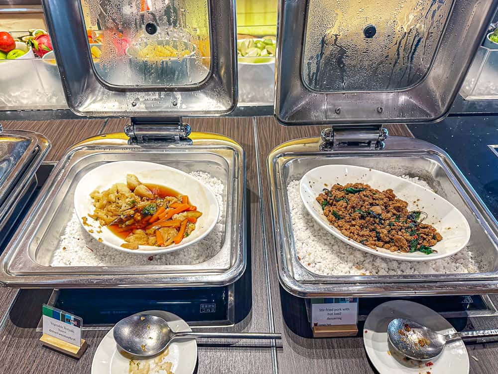 La salle du petit-déjeuner de l’hôtel Sathorn Vista – Bangkok – Marriott Executive Apartments est plutôt bien aménagée, mais si je l’ai trouvée sombre du fait de sa localisation au rez-de-chaussée (sachant que lors de mes trois dernières nuits, j’était en étage élevé pour prendre le petit-déjeuner) ! Et les lumières aux teintes jaunes n’aident pas vraiment à se réveiller le matin !