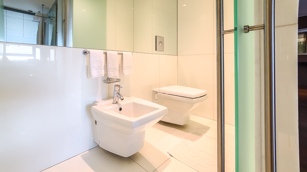 La couleur est plus orangée que le reste de la suite. Naturellement, la grande fenestration nous permet, encore une fois, d’admirer la vue spectaculaire que nous avons sur le pont du 25 avril ainsi que sur la chapelle de Notre-Dame de la paix.