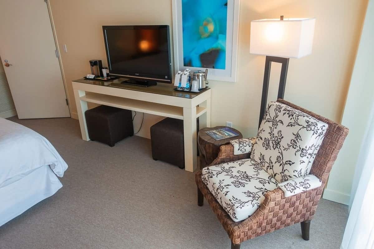 Je fais part de mon mécontentement sur ce point, mais la réceptionniste m’affirme ne rien pouvoir faire… soulignant que mon statut Titanium Élite a tout de même permis un surclassement en suite. De quoi faire passer la pilule des 15 US$ / nuit !