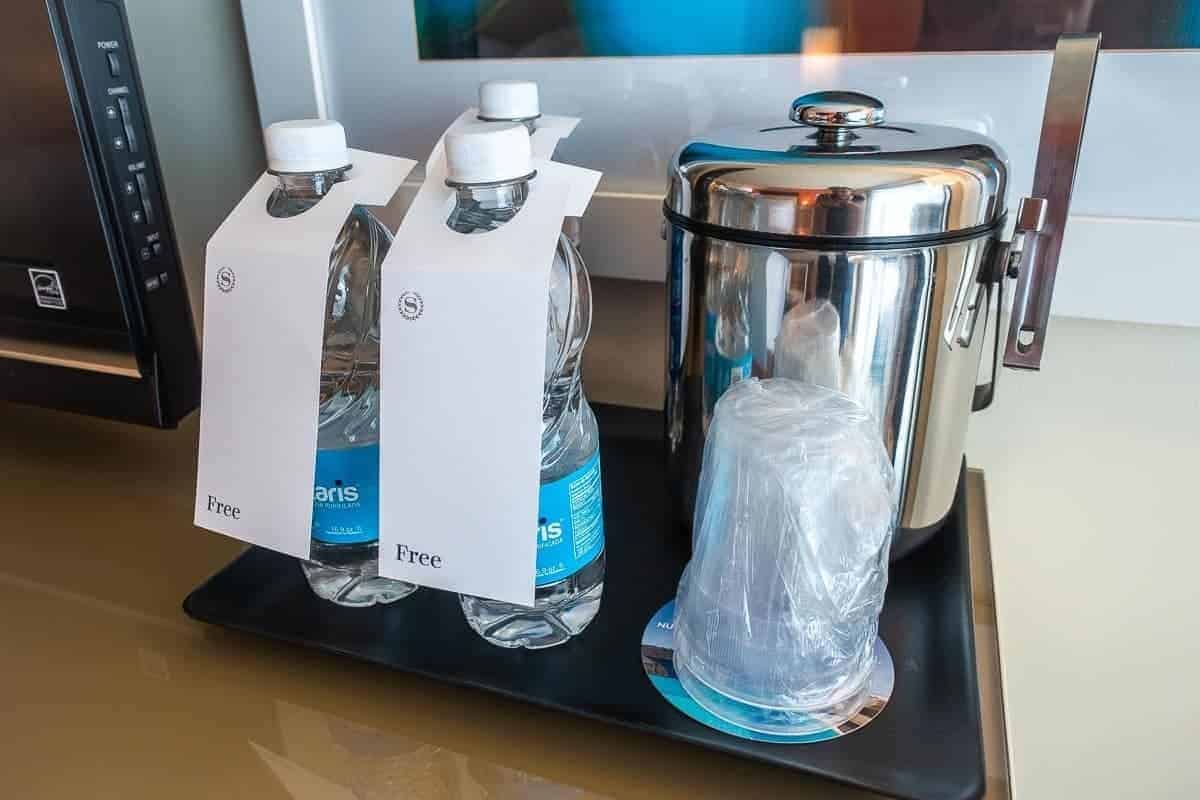 Nous apprécions retrouver en cadeau de bienvenue une assiette de fruits ainsi qu’une bouteille d’eau Fiji.