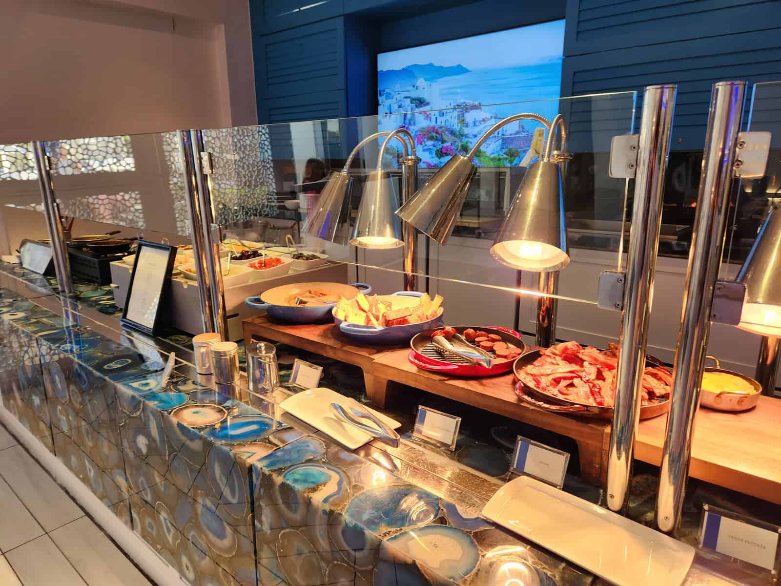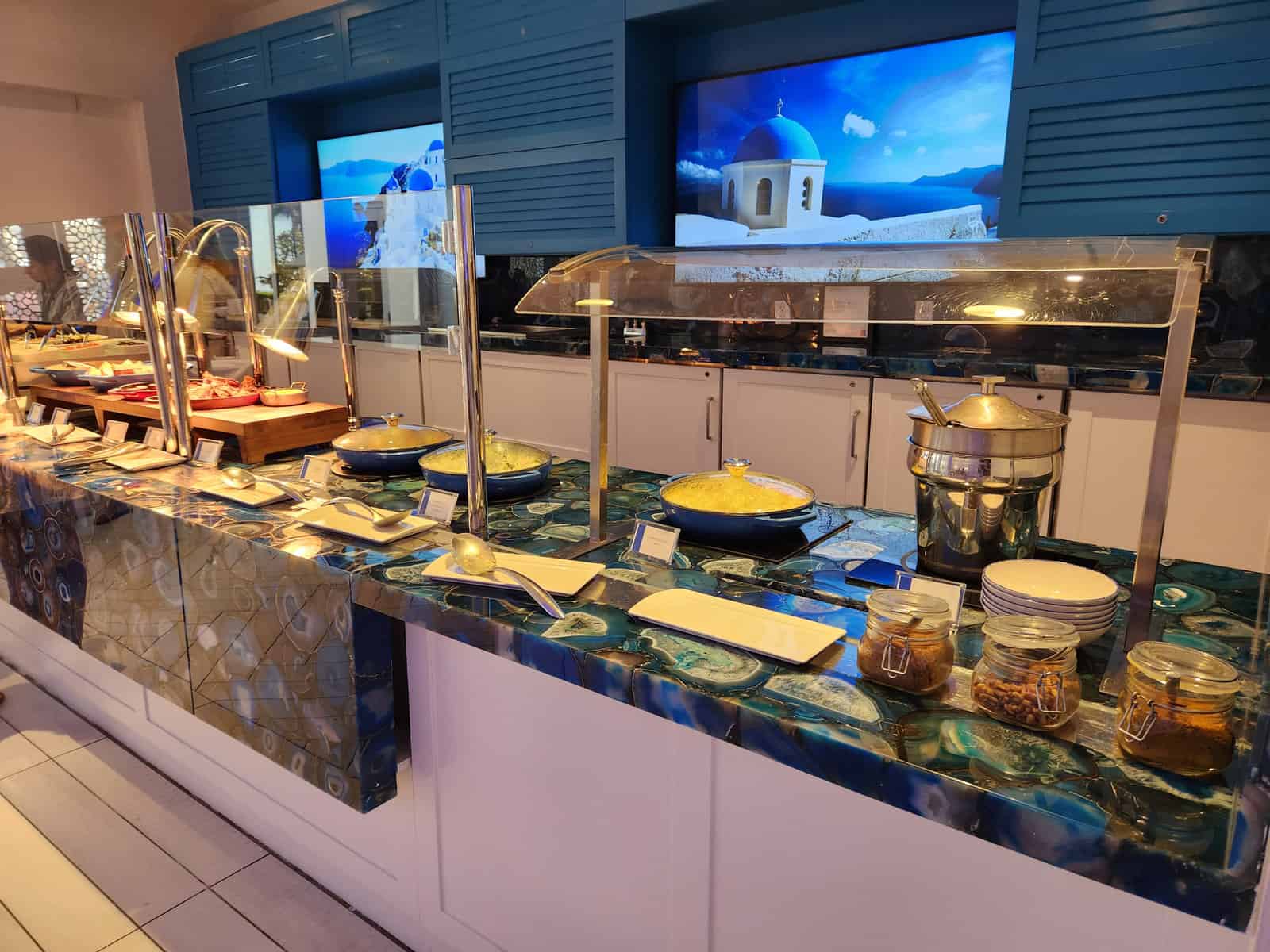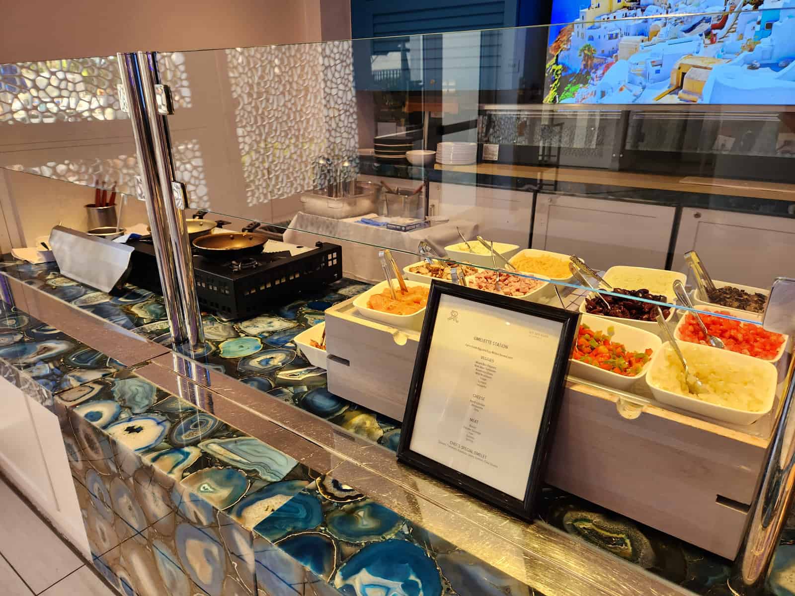 Le principal restaurant de l’hôtel est un restaurant grec appelé Atlantikos. En tant que membre Titanium Elite, nous avons eu droit à un buffet pour le petit déjeuner gratuit tous les jours. Le restaurant était magnifique et la nourriture délicieuse. Il s’agissait d’un petit-déjeuner buffet St. Regis complet avec pratiquement tout ce que l’on peut désirer.