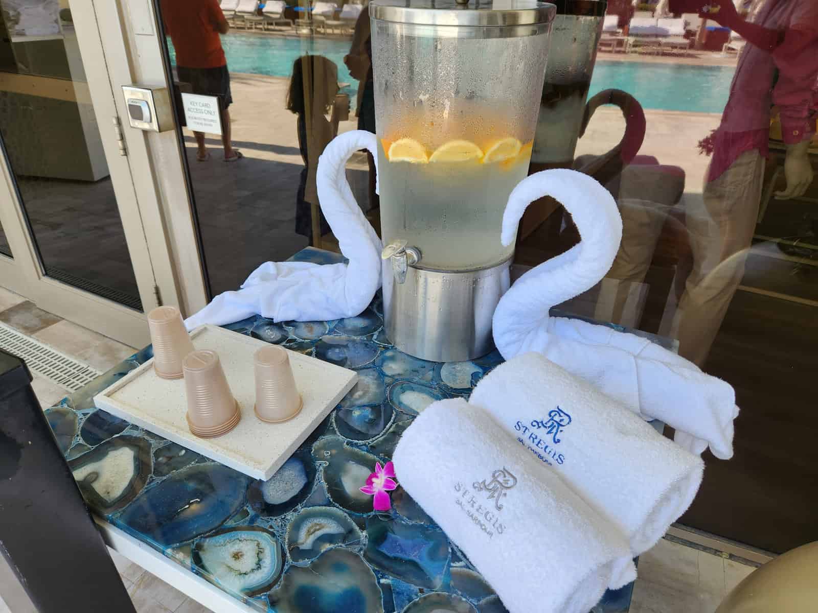 Le service caractéristique de St. Regis était présent dans tous les secteurs de l’hôtel. Le personnel de l’hôtel était courtois, rapide et prêt à vous aider en cas de besoin. Des chaises, des parasols et des serviettes ont été installés partout autour des piscines et de la plage.