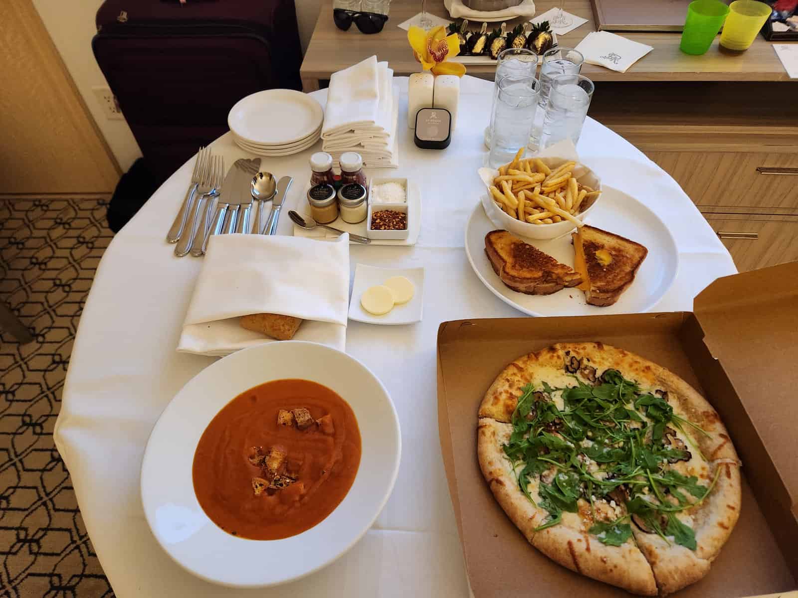 Nous avons commandé plusieurs fois le service à la chambre car c’était pratique pour les enfants. Le service était très bon et la nourriture très bien présentée. Tout était livré dans une boîte chauffante placée sous la table afin de maintenir les aliments à la bonne température jusqu’à ce qu’ils soient servis.