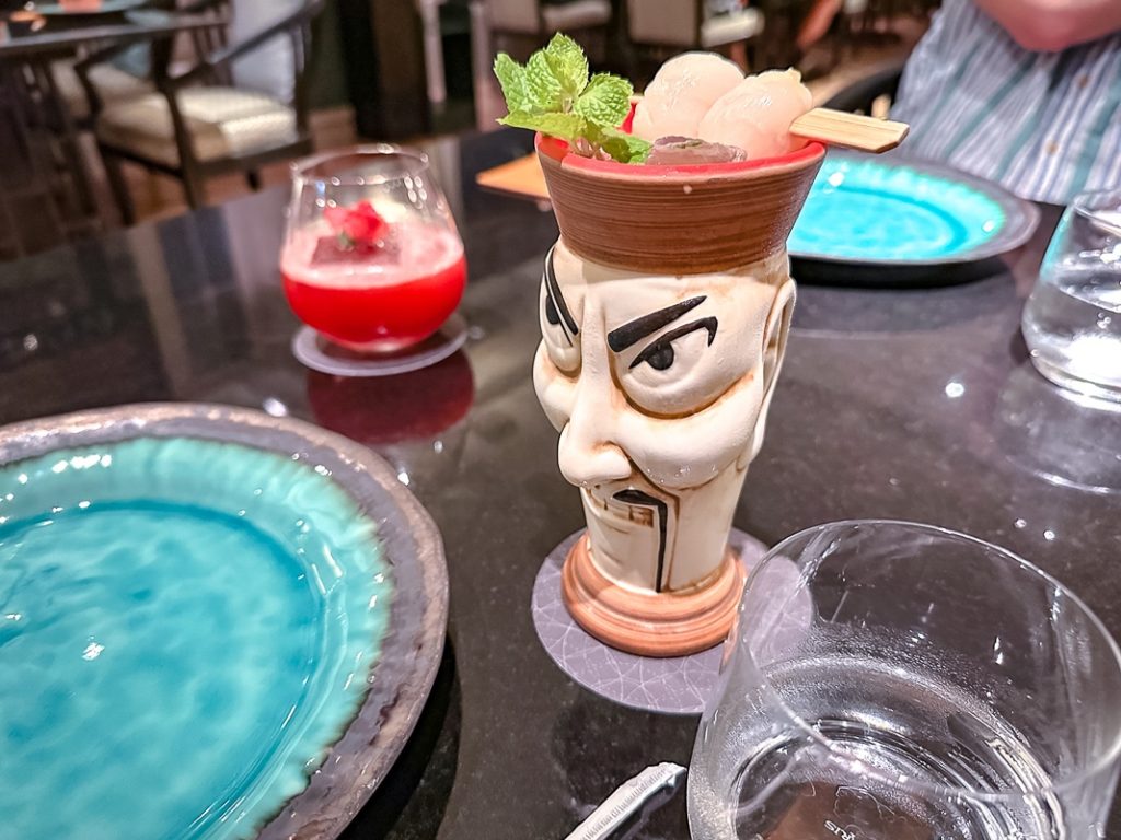 Les menus de nourriture et de boissons sont très grands, il était donc difficile pour nous de choisir. Nous avons commencé par des cocktails, tous originaux par leur goût et leur présentation, et plutôt rafraîchissantes. Les boissons nous ont coûté environ 350 THB chacune, mais il y avait des options moins chères (mocktails), qui étaient également délicieuses.