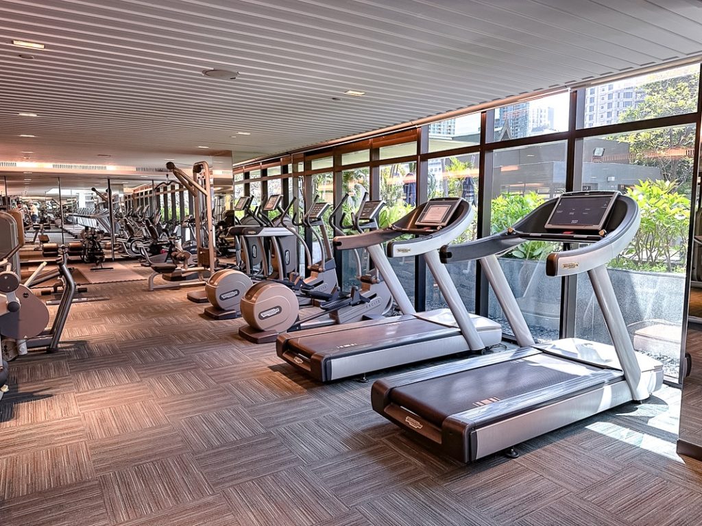 Il y a également un grand centre de remise en forme, situé au 4ème étage près de la piscine, où vous pouvez faire de l’exercice et suivre des cours de Muay Thai et des cours collectifs de musculation et d’étirement (gratuits).