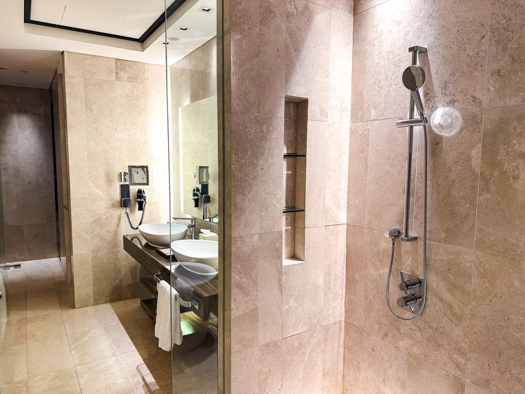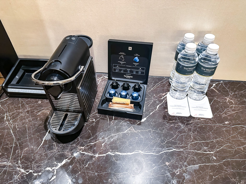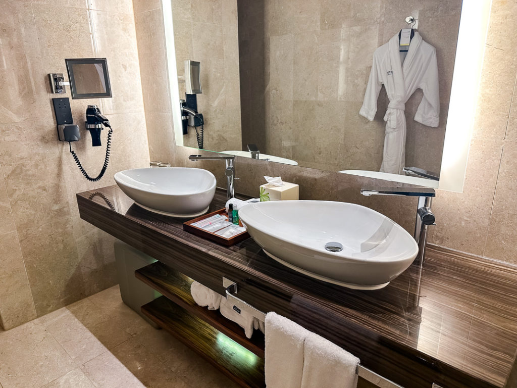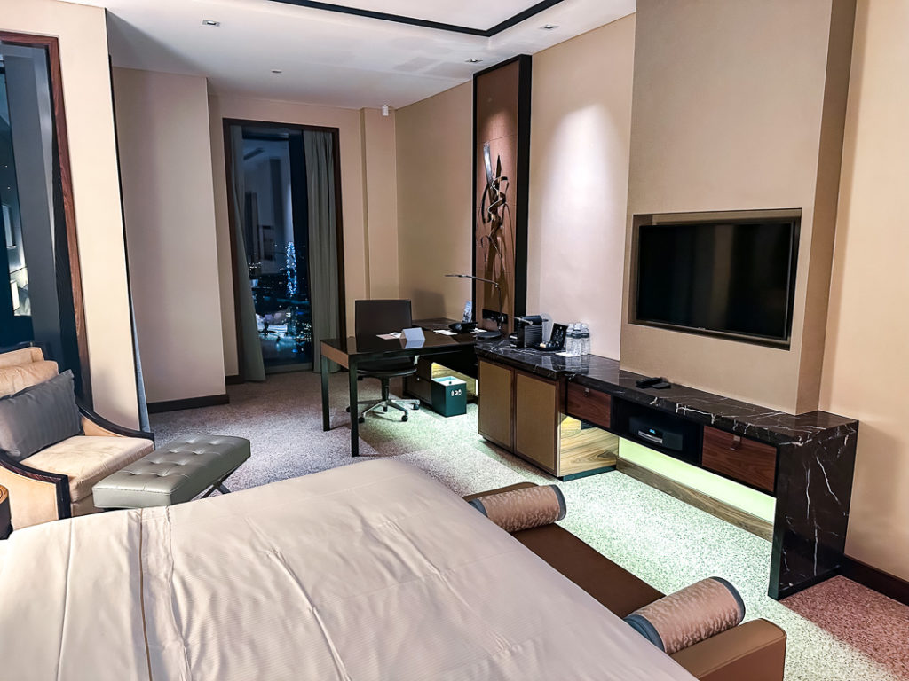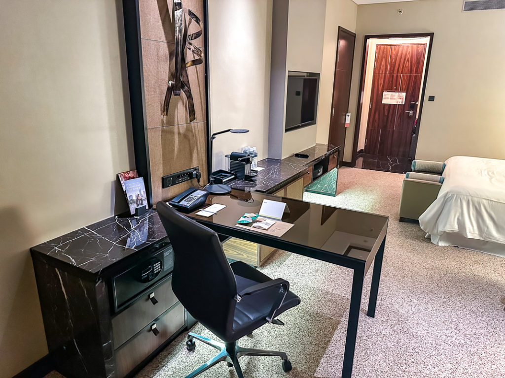 Les chambres de The Westin Singapore occupent les étages 32 à 46 de la tour. Du fait de mon statut Titanium, j’ai été surclassé dans une chambre plus large (Larger Guest Room) au niveau Club au 45ème étage.