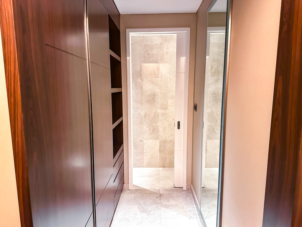 On y retrouve un espace bureau, un fauteuil et une machine a café Nespresso. L’ensemble est cossu et en soirée, j’apprécie les nombreuses lumières indirectes.