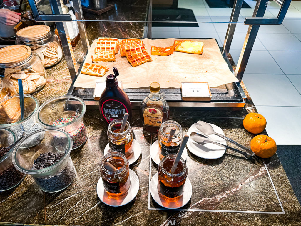 Si vous avez accès au Club Lounge de l’hôtel, sachez que vous pouvez également y retrouver un buffet de petit-déjeuner (bien plus sommaire bien évidemment, mais bien moins achalandé).