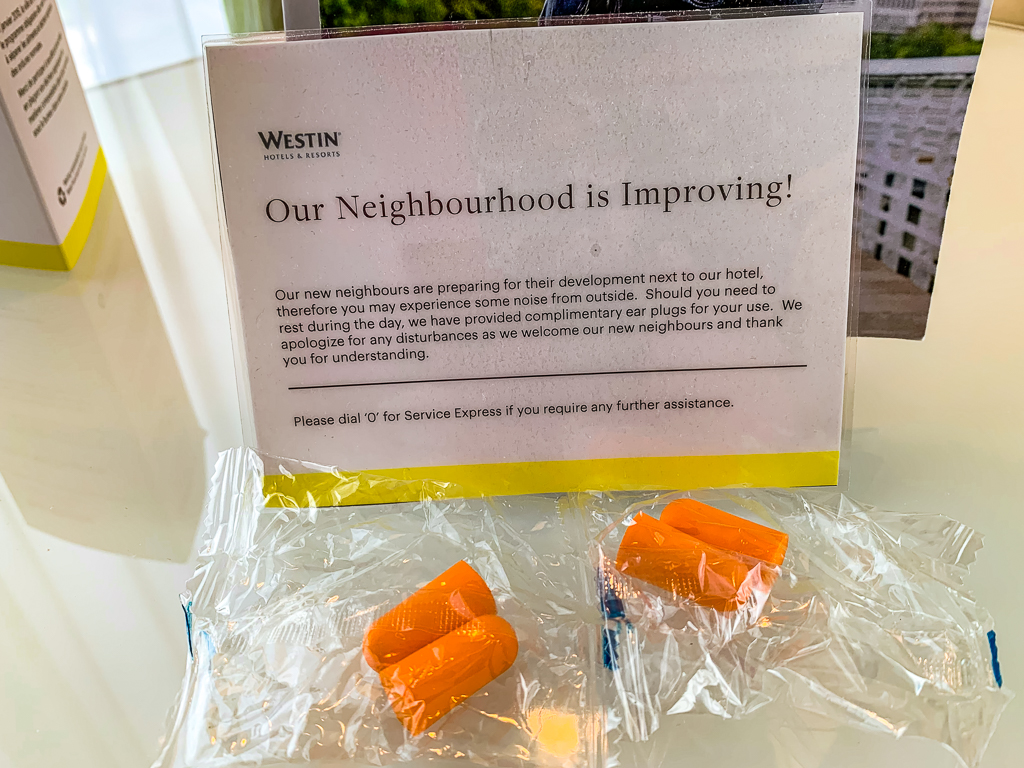 Malgré la proximité de l’aéroport, nous n’avons pas du tout entendu les avions.  Tout était calme de ce côté mais à cause de la construction dans le secteur, l’hôtel fournissait des bouchons pour les oreilles.  Nous n’en avons pas eu besoin.