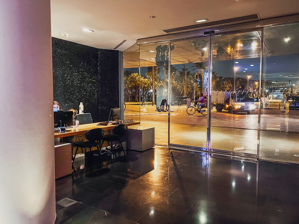 Son design extérieur ressemble à celui d’une voile et se fond dans le paysage avec sa facade en verre, presque à la manière du Burj Al Arab de Dubai. Il offre une vue imprenable sur la belle ville de Barcelone.