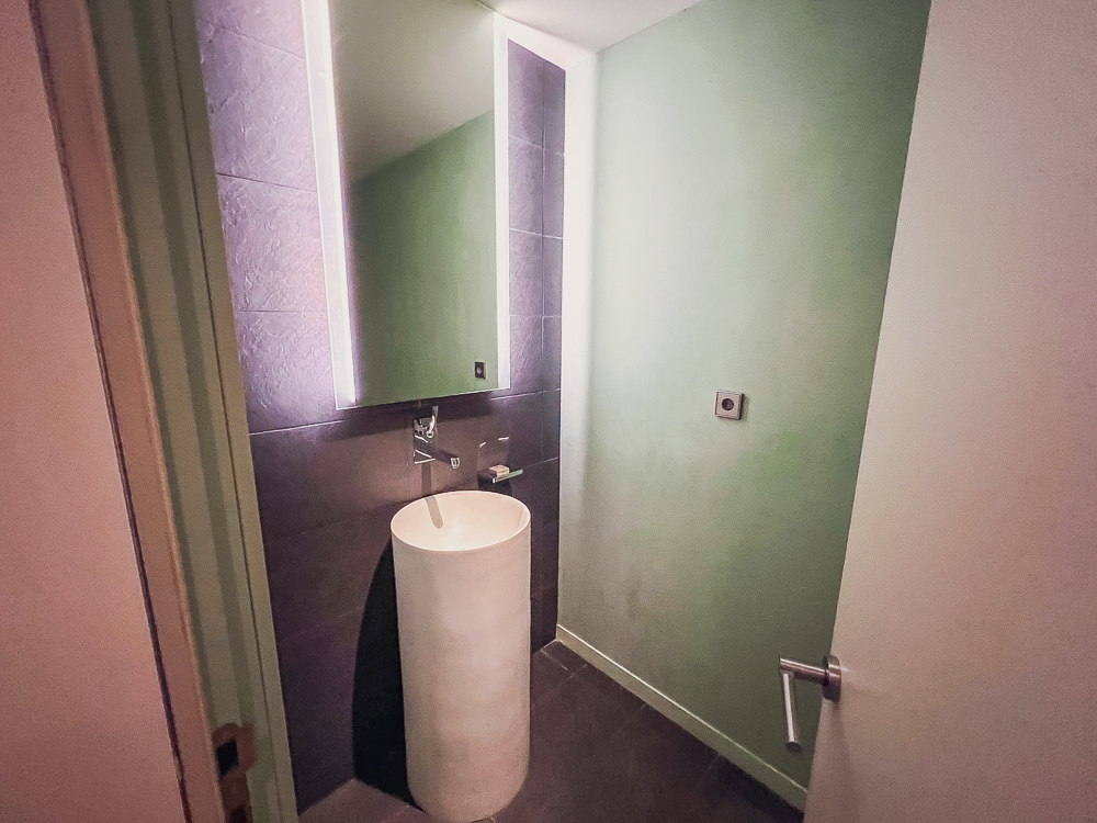 L’espace est aéré, lumineux en journée et hypnotisant la nuit avec toutes les lumières de la ville avec la baie vitrée qui va de la chambre au salon. Magnifique.