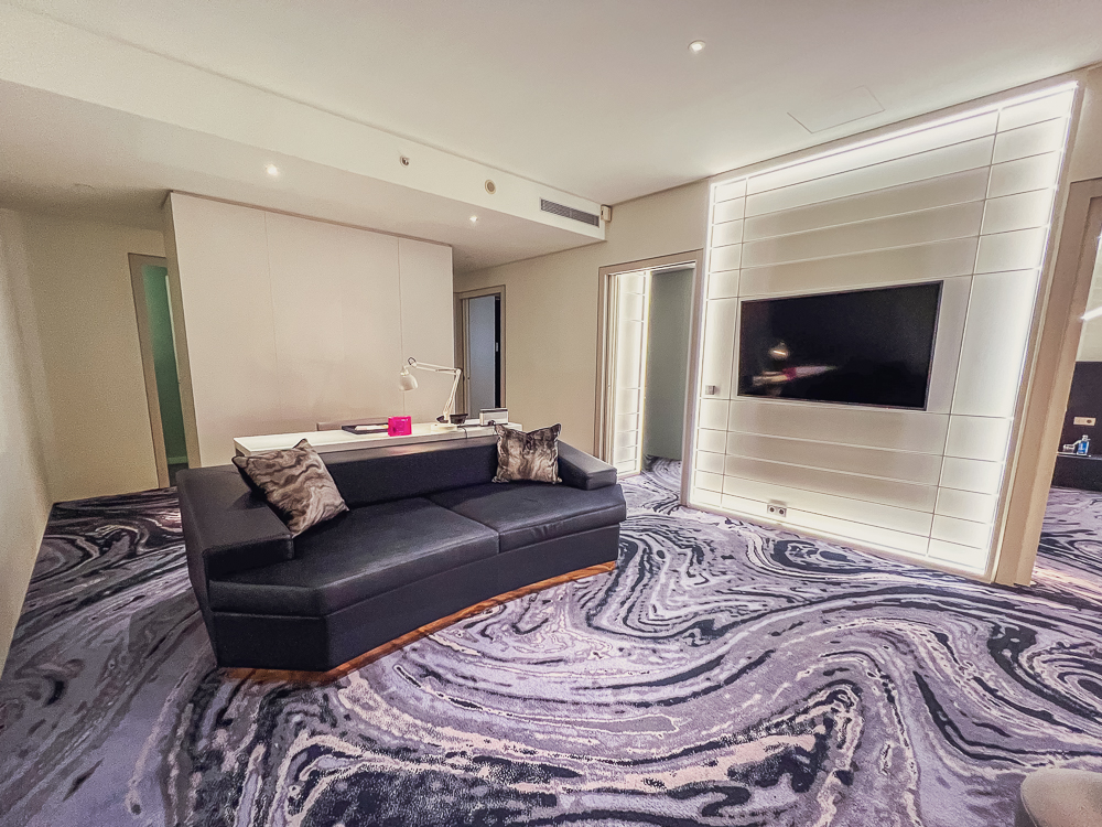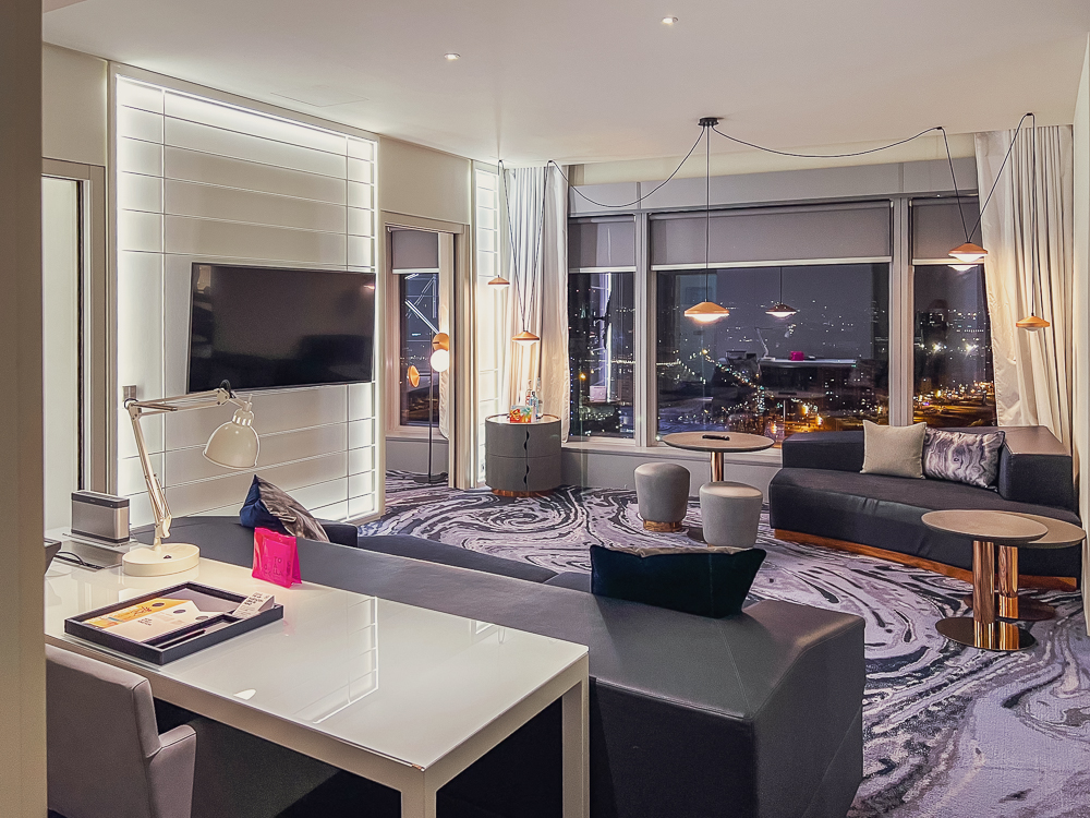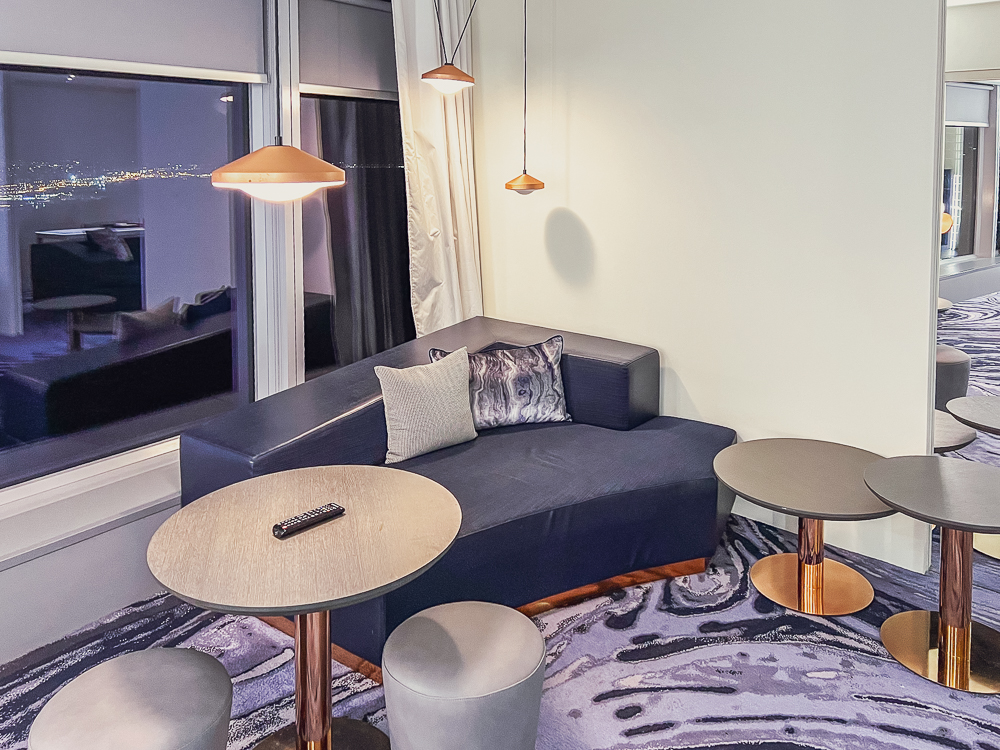 Nous avons obtenu un surclassement, une suite située à un étage élevé au 25ème étage nous permettant de profiter du beau panorama sur la ville.