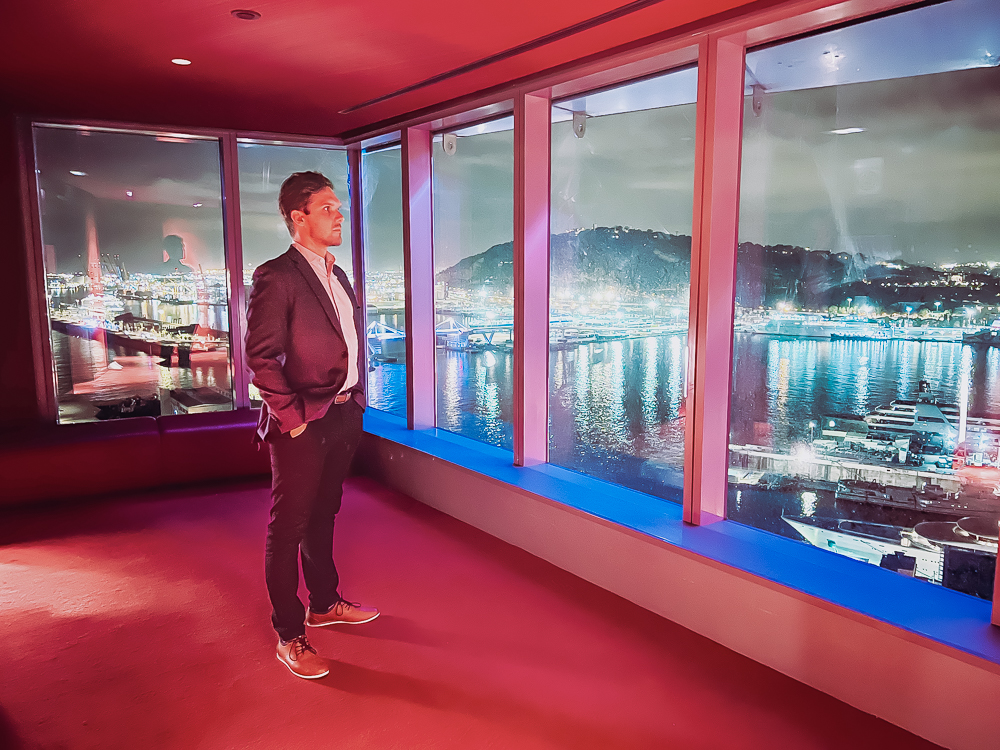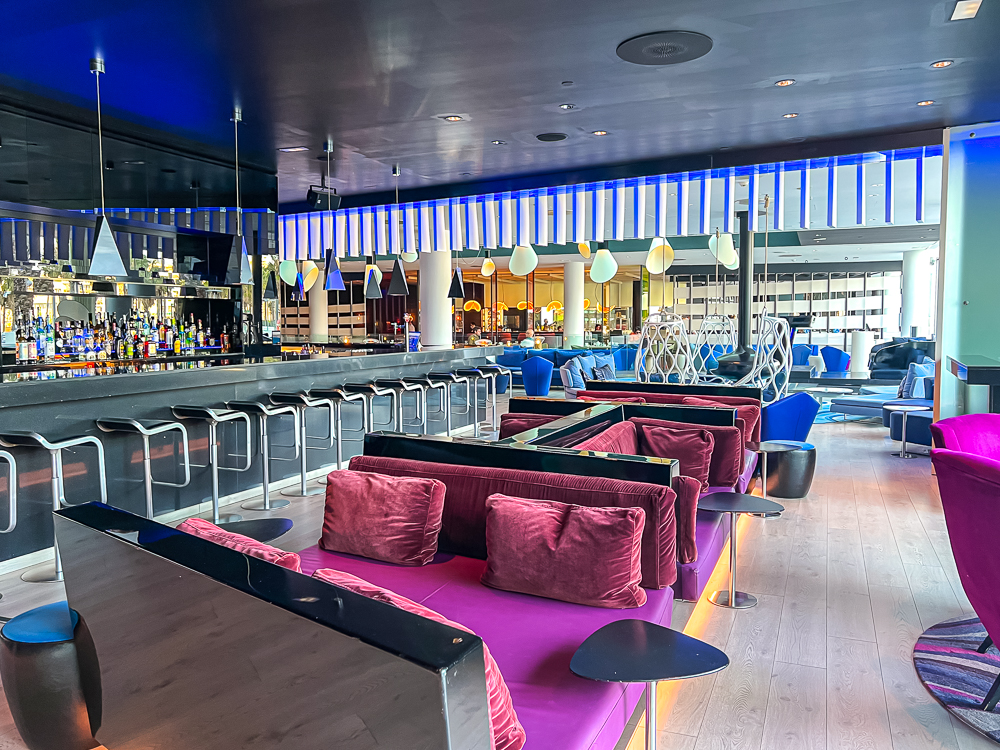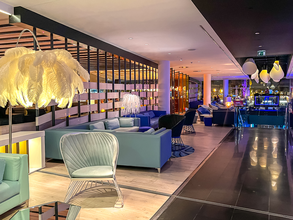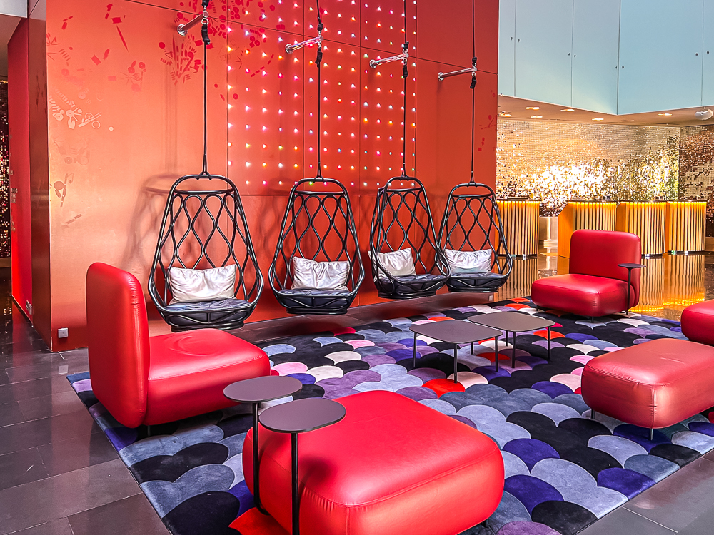 J’ai été impressionnée à mon arrivée par le hall d’entrée de l’hôtel. Arrivés en soirée, il y avait du monde qui attendait pour monter au bar du dernier étage, ainsi qu’aux comptoir de réception.