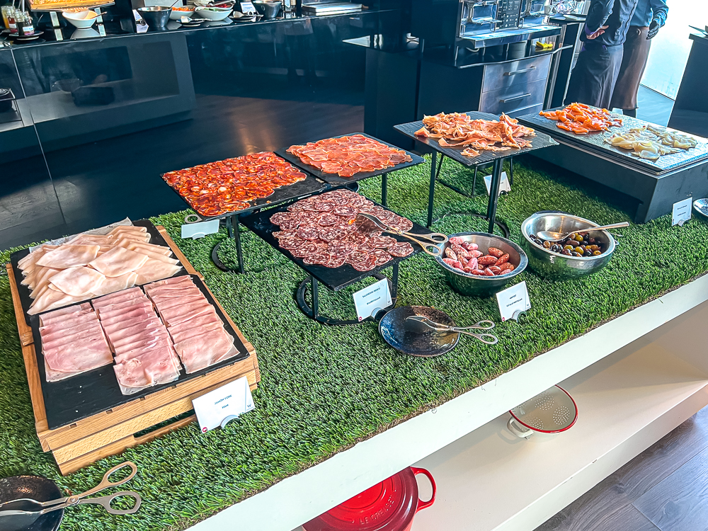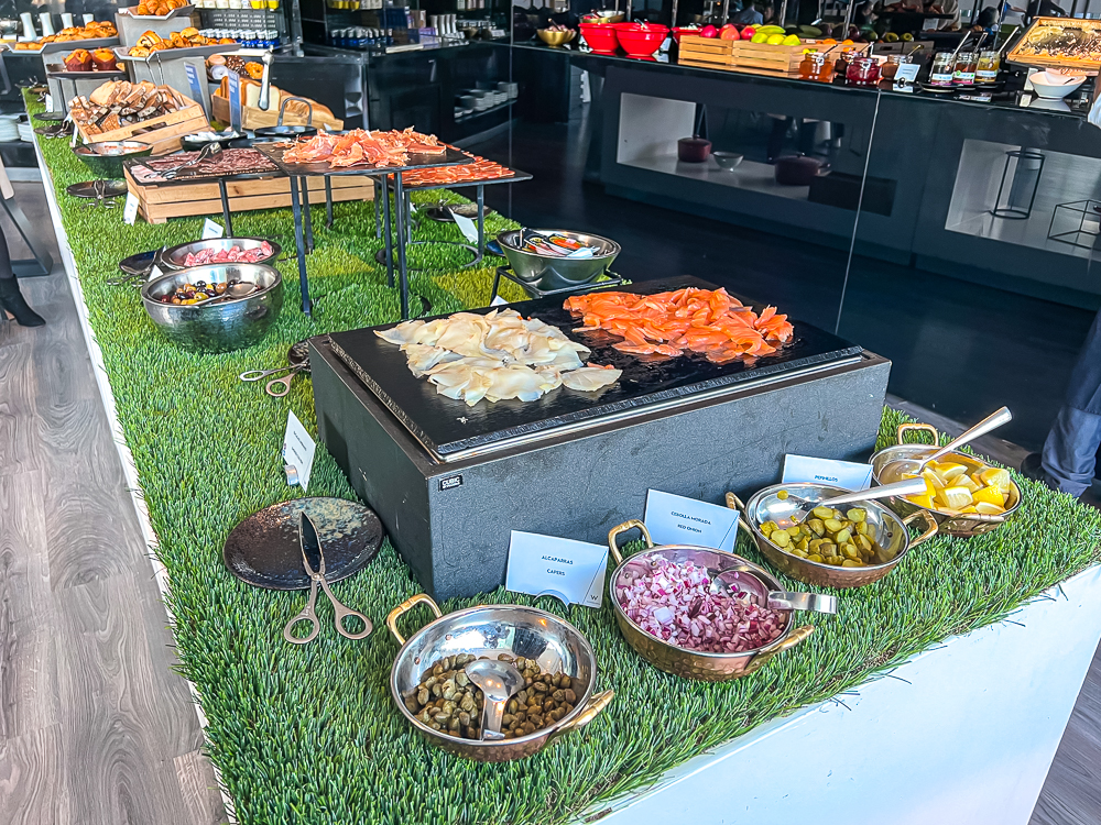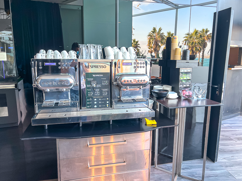 Les petits déjeuners se prennent à côté du restaurant Fire au rez-de-chaussée et sont très appétissants. Le tout est soigneusement disposé sur des plateaux eux même sur une pelouse décorative. Une grande machine Nespresso permet de se servir un café digne des baristas.