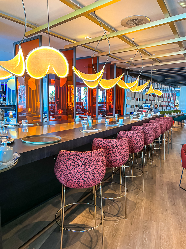 L’hôtel W Barcelona propose plusieurs endroits pour se restaurer. Au rez-de-chaussée, le FIRE est très prisé pour son foyer et son ambiance cozy.