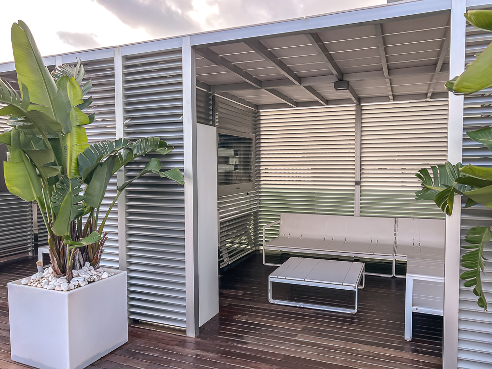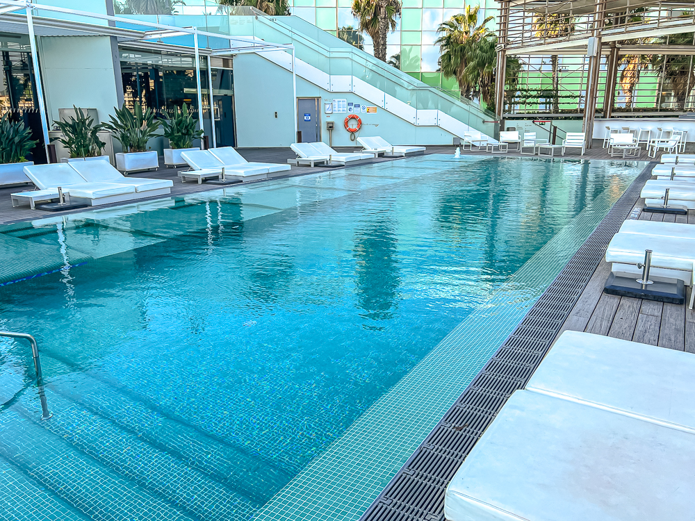Deux piscines permettent de se reposer dont une avec un espace relié au Wet Deck pour savourer un cocktail. On peut s’installer dans une cabana à la seconde, qui est un peu plus tranquille et face à la mer.