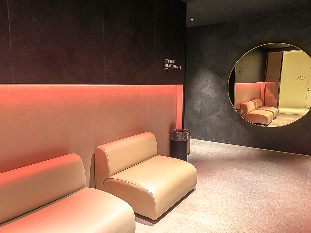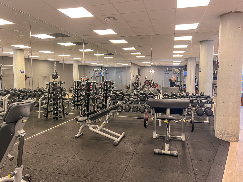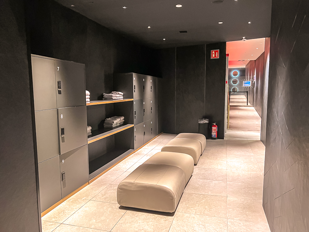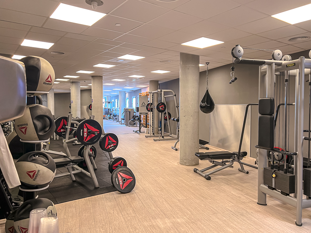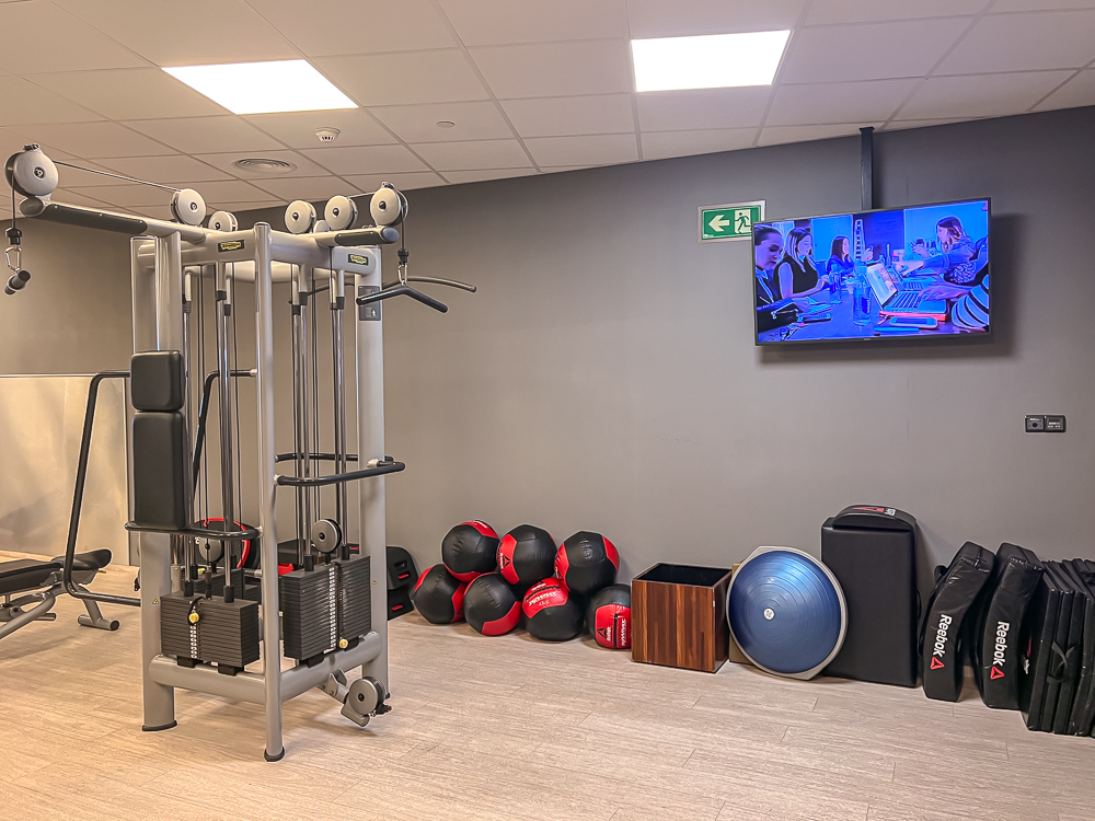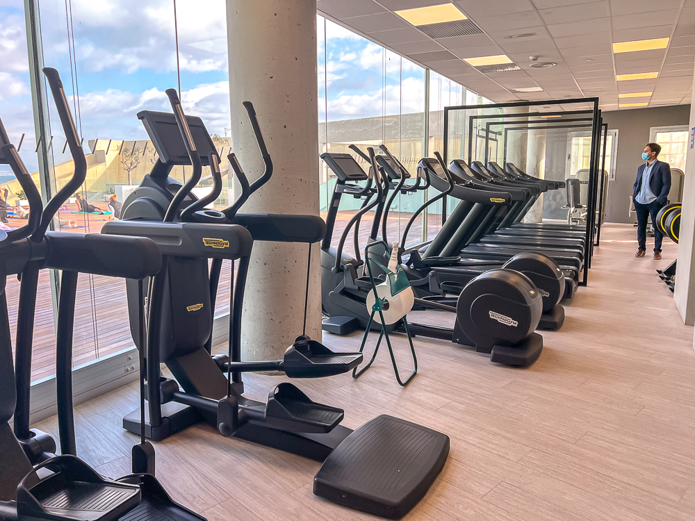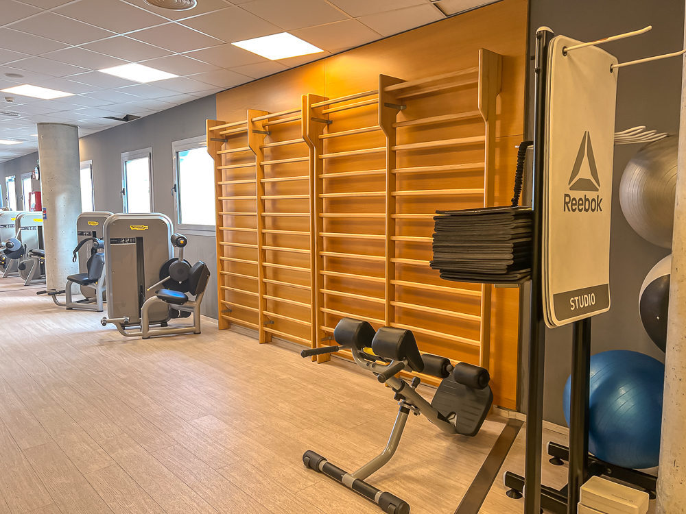 La salle de fitness est très attrayante. Beaucoup d’appareils de musculation sont présents, certains font face à une grande terrasse en bois. D’ailleurs un cours de yoga étaient donné à notre passage. Les vestiaires sont propres, sobres et design.