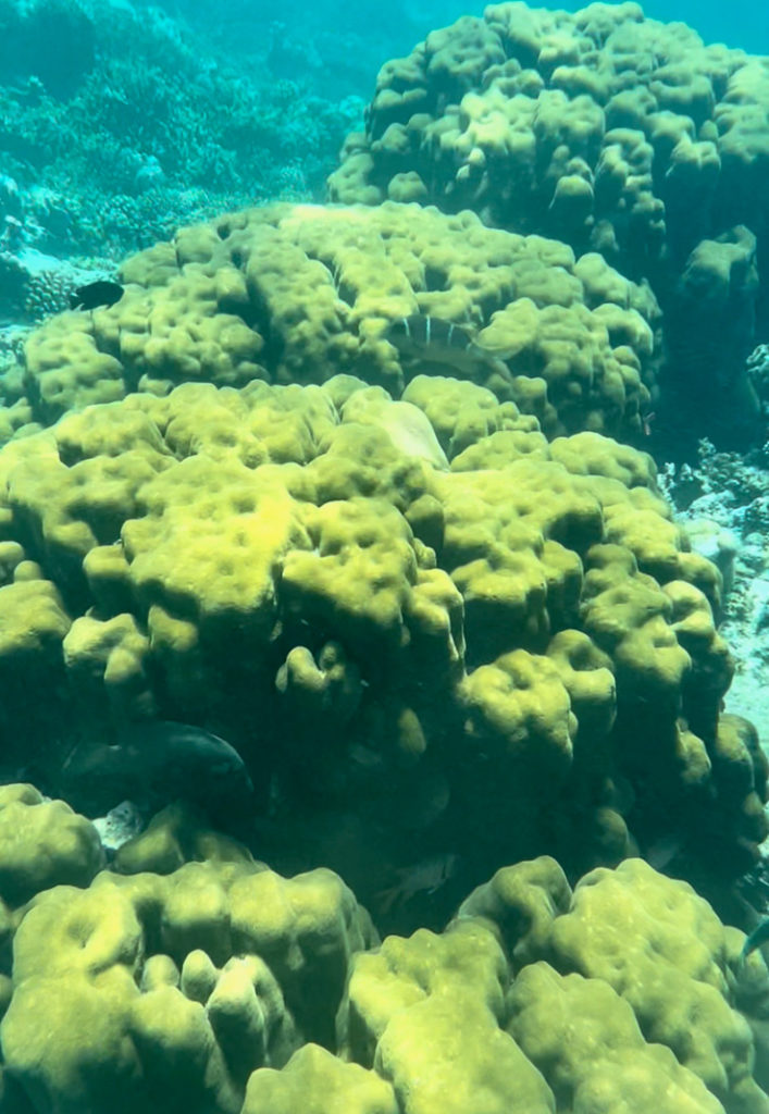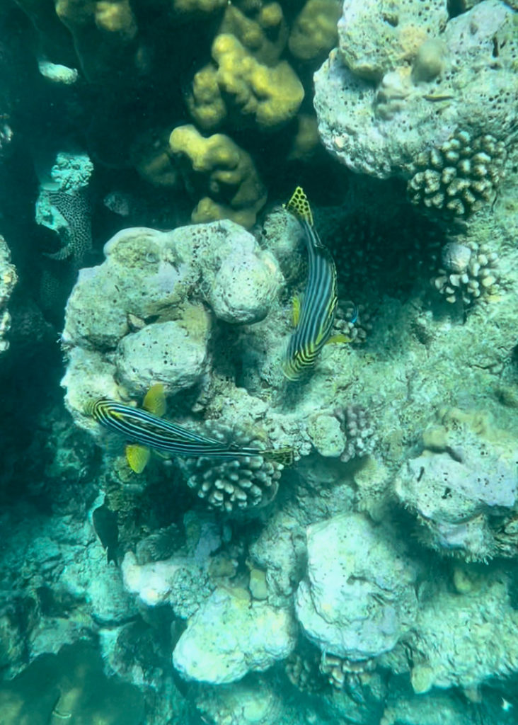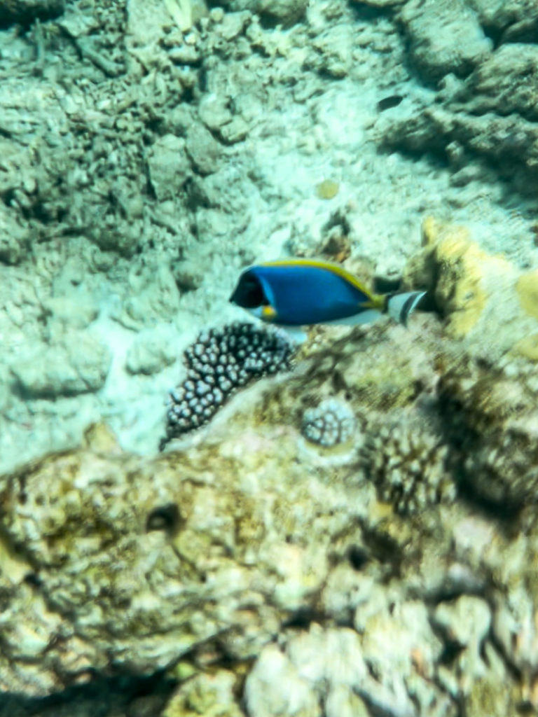Nous avons fait en moyenne 3 heures de snorkeling par jour durant notre séjour. On parle donc d’environ 15 heures passées dans l’eau de l’atoll. Bien qu’il soit un peu plus facile de nager dans le lagon au sein de l’atoll, que l’on y voit pas mal d’espèces de poissons, des tortues, des raies et même des requins végétariens, la plus grande variété et diversité se retrouve à l’extérieur de l’atoll.