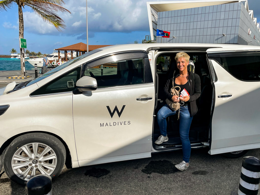Voyageant depuis plusieurs années en carry on seulement, nous n’avons pas à attendre nos valises et nous sommes donc amenés directement à la voiture attitrée au W Maldives. Nous étions les seuls ce matin-là à être accueillis.
