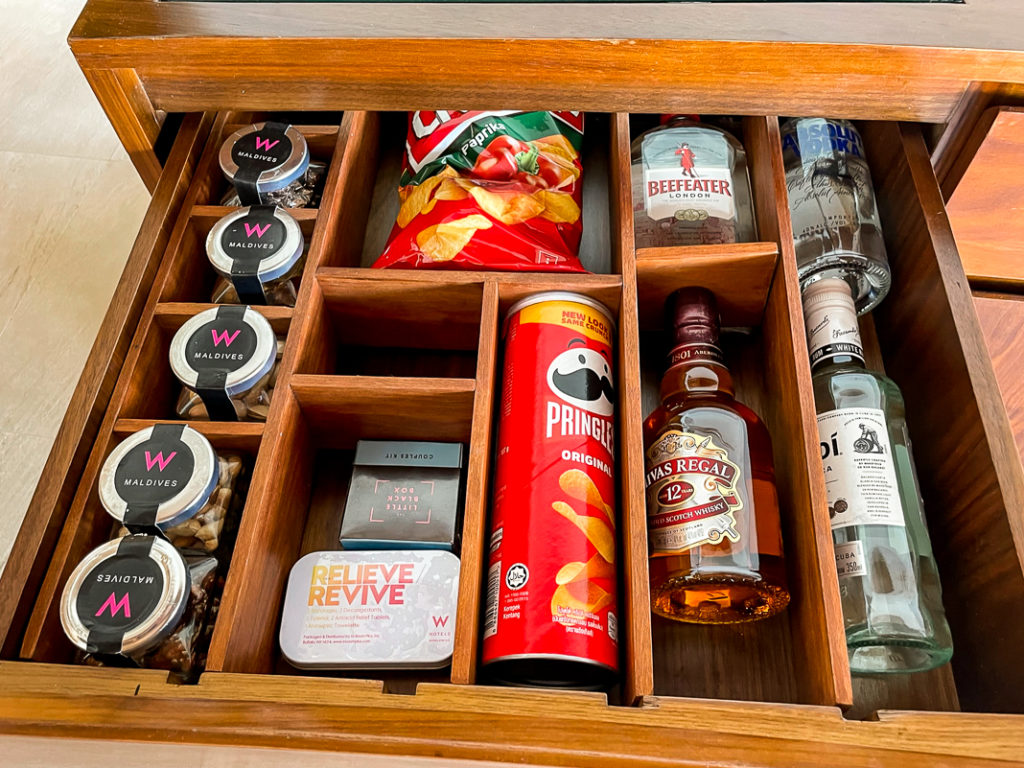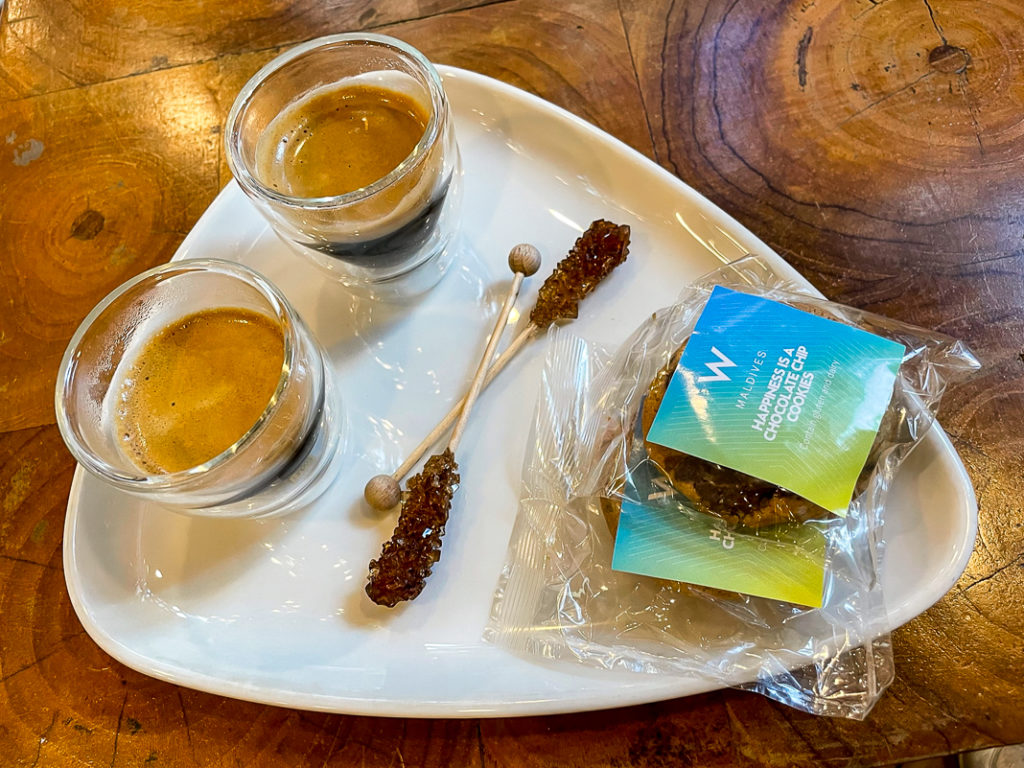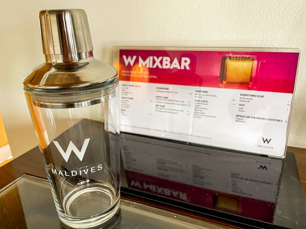 Comme le W Maldives est le seul resort de l’atoll (ce qui est le cas de la grande majorité des hôtels aux Maldives), nous sommes un peu captifs de l’endroit en particulier pour les repas. Et les coûts sont corrélés avec le prix des chambres. C’est donc cher.