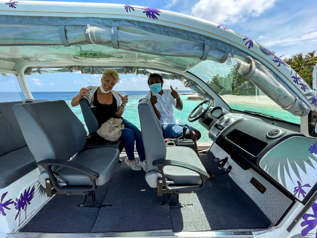 À savoir que l’hydravion peut être pris entre 6h et 16h (le check-in ferme à 15h30). Notez toutefois qu’il est mentionné que pour les vols arrivant ou partant entre 15h30 et 6h00, en raison de la non-disponibilité de l’hydravion, le resort peut organiser un transport en hors-bord depuis/vers l’aéroport (MLE). On parle alors d’un prix fixe minimum de 1400$ USD pour 1 bateau (max. 4 passagers) pour un trajet de 90 minutes aller-simple.