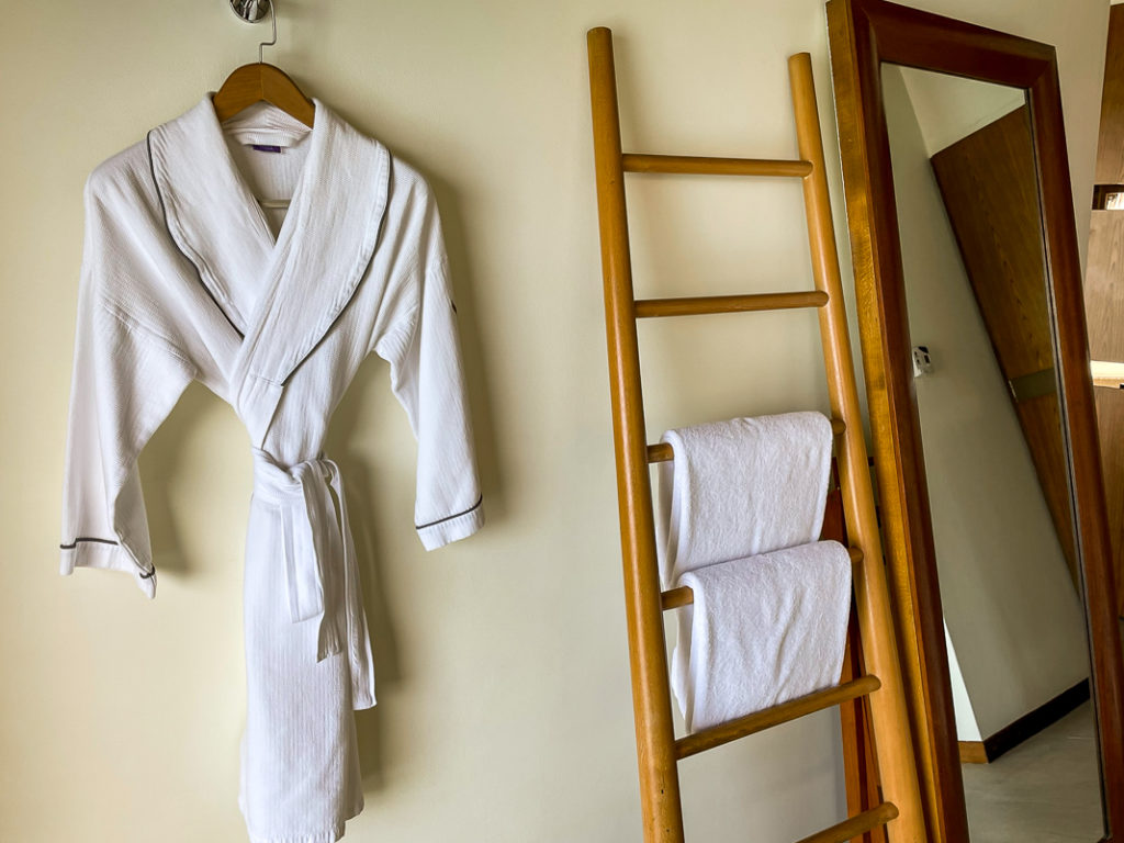 En échangeant donc avec l’employée lors du check-in, nous exprimions avec un peu d’humour (et de stratégie) à quel point nous avions été tiraillés entre choisir « sur pilotis » ou « sur la plage ». Sympathique envers notre dilemme, c’est alors qu’elle nous a proposé de diviser notre séjour.