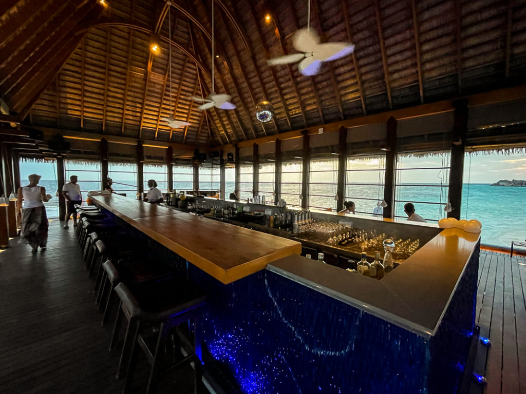 Qui dit Maldives, dit océan et dit produits de la mer. Le restaurant est situé sur pilotis au-dessus de l’océan, avec un éclairage sous-marin permettant d’admirer les innombrables poissons, allant des poissons-perroquets, aux requins en passant par les raies. C’est magnifique. Et que dire de la nourriture. Les options sont très variées et le choix va dépendre du budget de chacun.