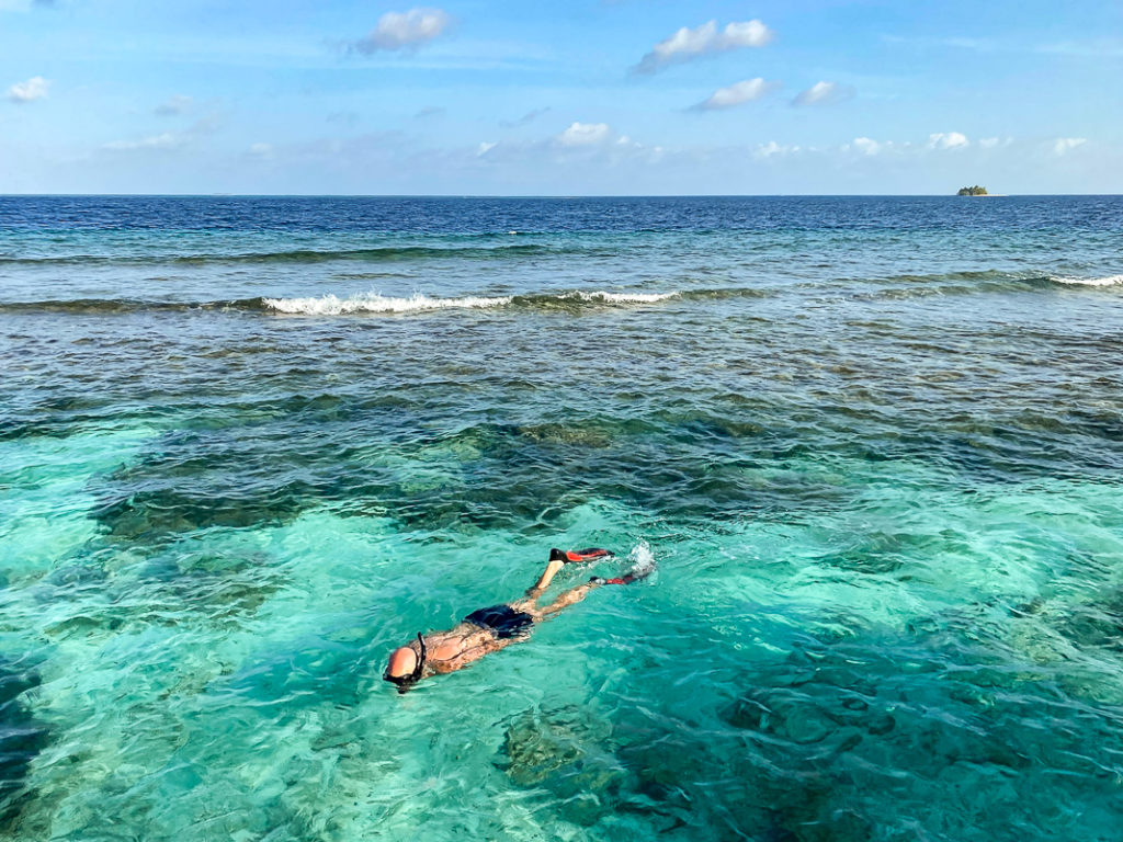 Nous y avons pu apprécié autant la villa sur pilotis que la villa sur plage, avec une légère préférence pour la villa sur plage. Le récif entourant l’atoll nous a permis d’y admirer une flore et une faune marine extrêmement diversifiées et faciles d’accès. L’océan est chaud et nous pouvions facilement passer 3 heures continues par jour dans l’eau sans avoir froid.