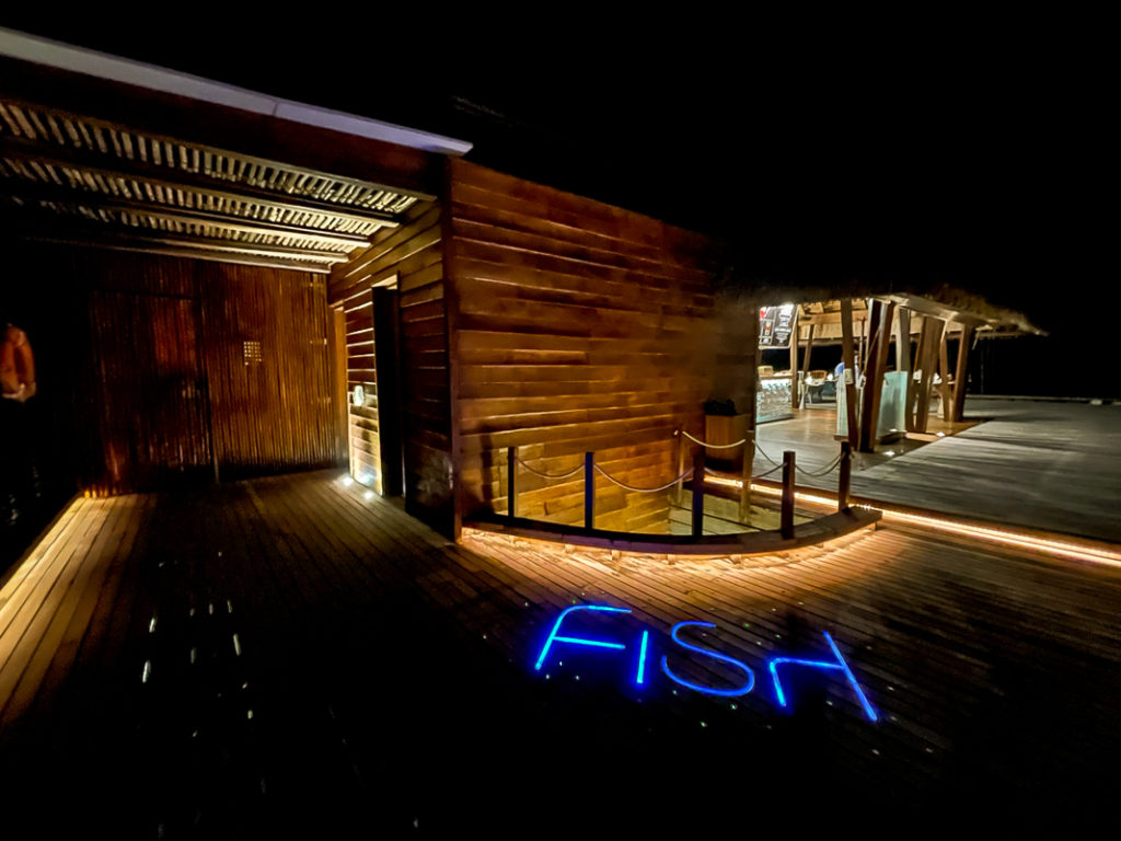 Le restaurant Fire est situé sur l’atoll principal et comme son nom le suggère, il est spécialisé en cuisson (principalement de la viande). Il est donc le pendant du Fish en quelque sorte.