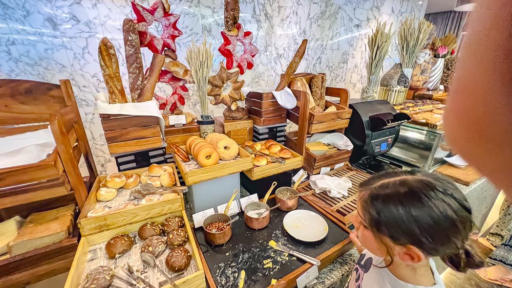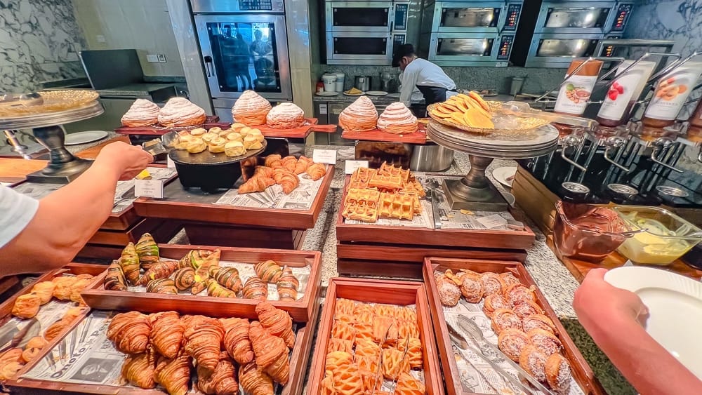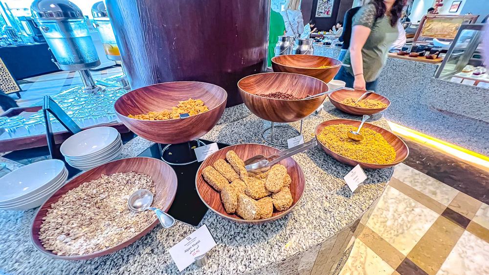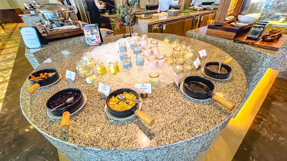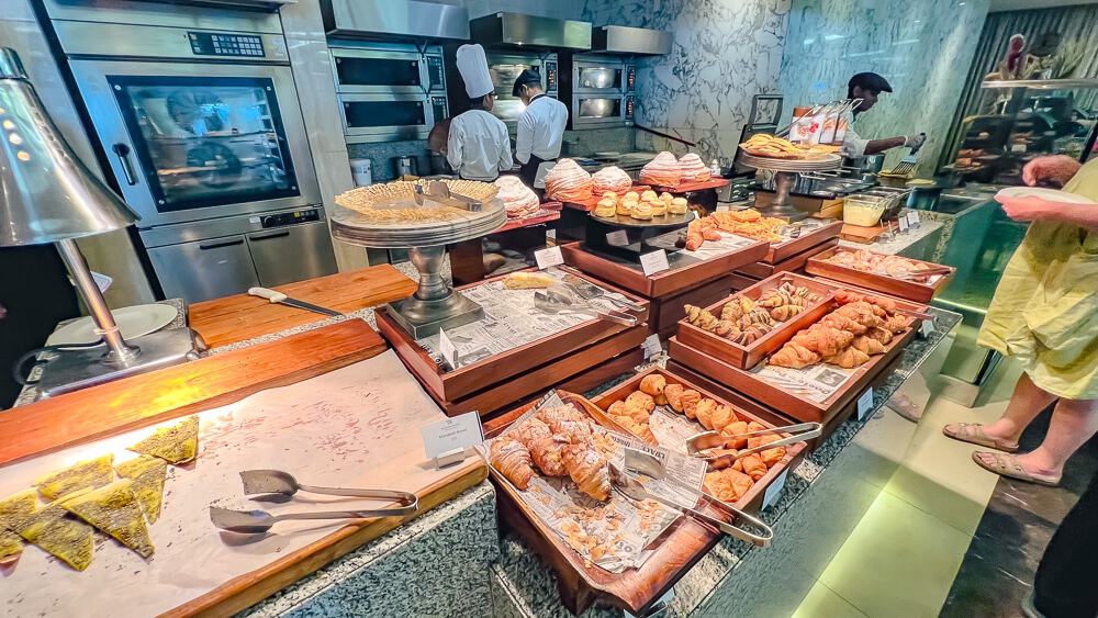 Le service du petit-déjeuner est à l’image de l’hôtel : varié. Il y avait du monde à notre venue. Un vaste choix de mets est proposé pour satisfaire toutes les papilles, dans un cadre confortable, toutefois, que j’ai trouvé moins élégant que le reste de l’hôtel. Voici ce que nous avons pu y trouver:
