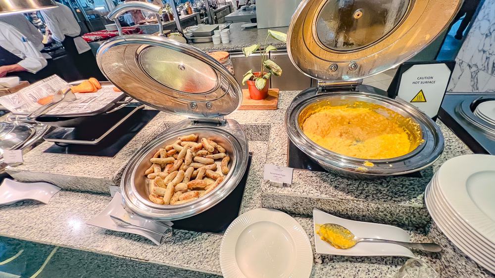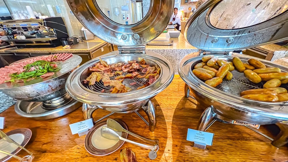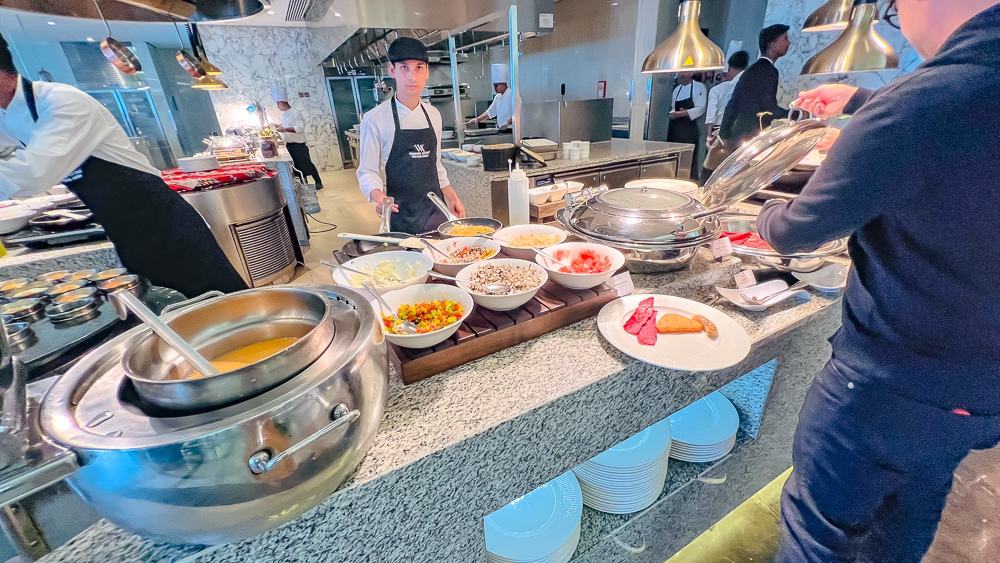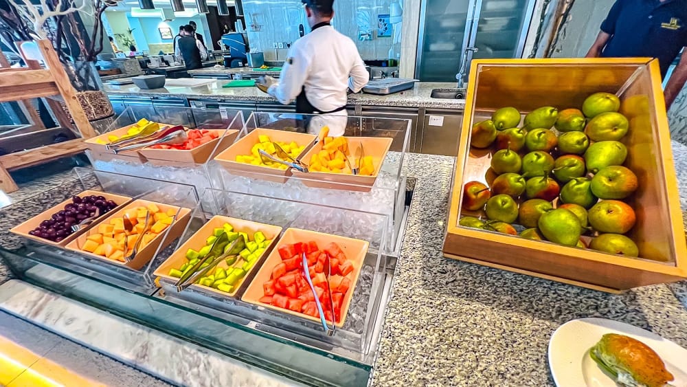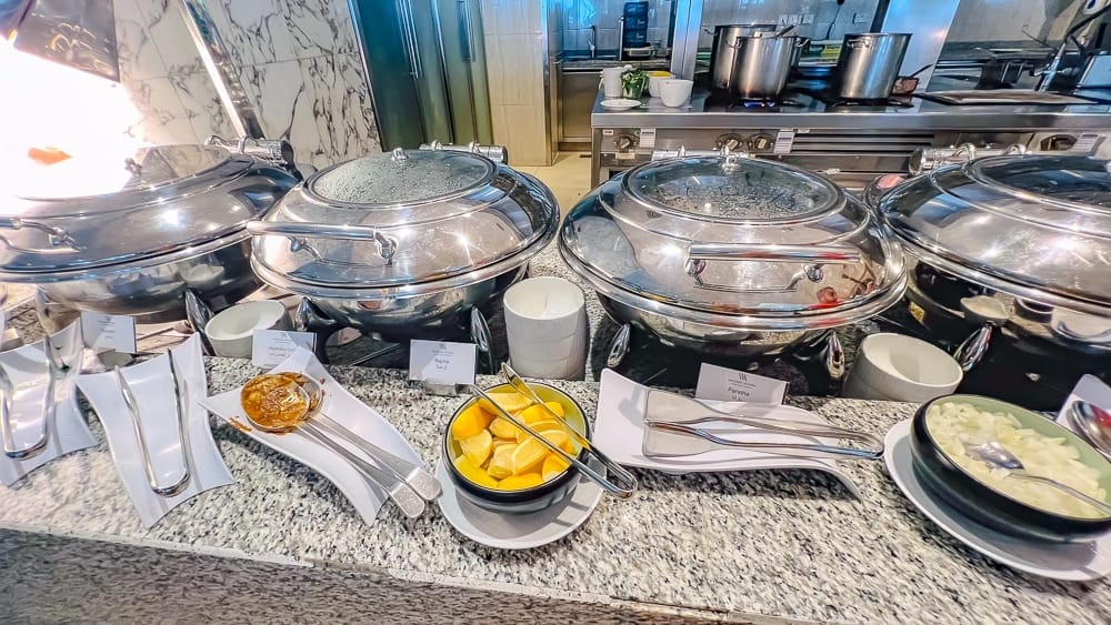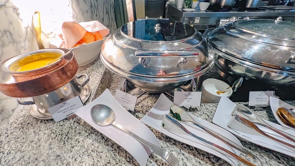 Le service du petit-déjeuner est à l’image de l’hôtel : varié. Il y avait du monde à notre venue. Un vaste choix de mets est proposé pour satisfaire toutes les papilles, dans un cadre confortable, toutefois, que j’ai trouvé moins élégant que le reste de l’hôtel. Voici ce que nous avons pu y trouver: