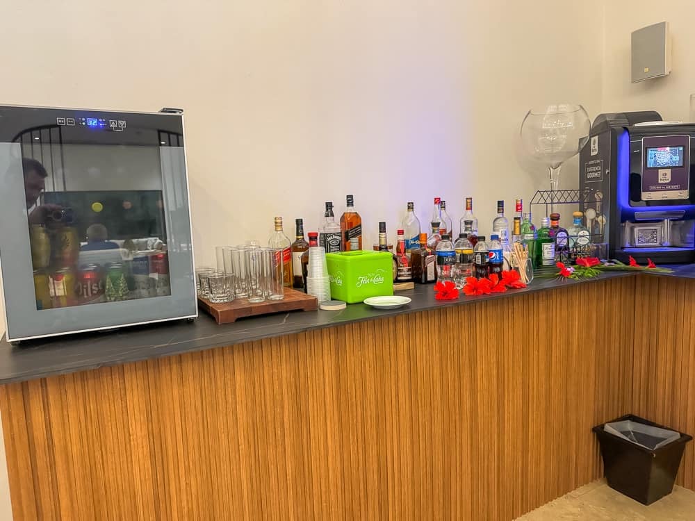 Toujours au niveau de la réception, il y a un bar (qui très pratique pour boire un dernier cocktail en attendant son transport le dernier jour) ainsi qu’une boutique de vêtements et de souvenirs.