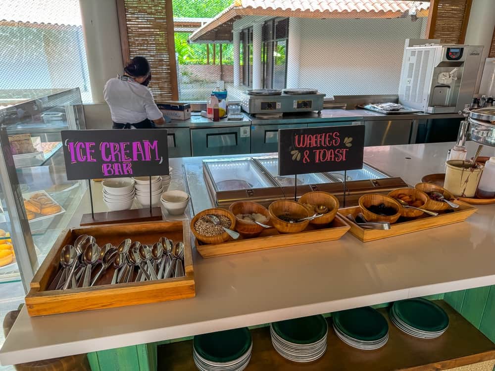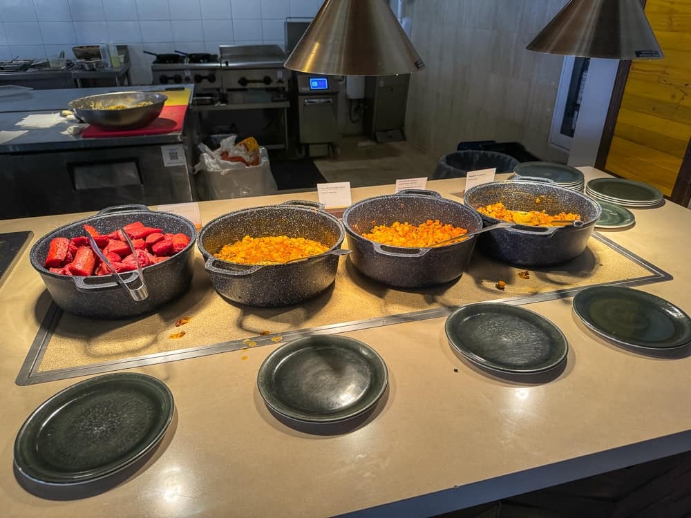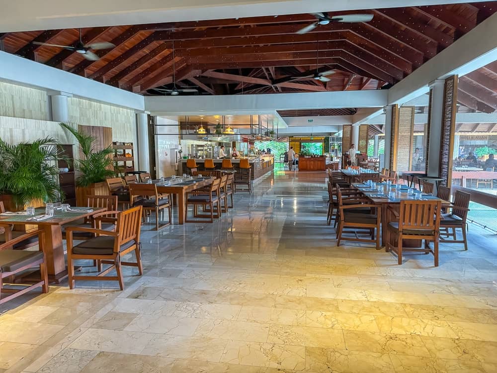 Le petit déjeuner est servi au restaurant Mitra Market. Le buffet du restaurant est très vaste et offre un large choix de stations. Chaque jour, lorsque le serveur vous place, il vous présente le café du jour. Contrairement à ce que l’on peut voir dans les tout inclus, ici, ce sont les chefs de chaque station qui vont vous servir.