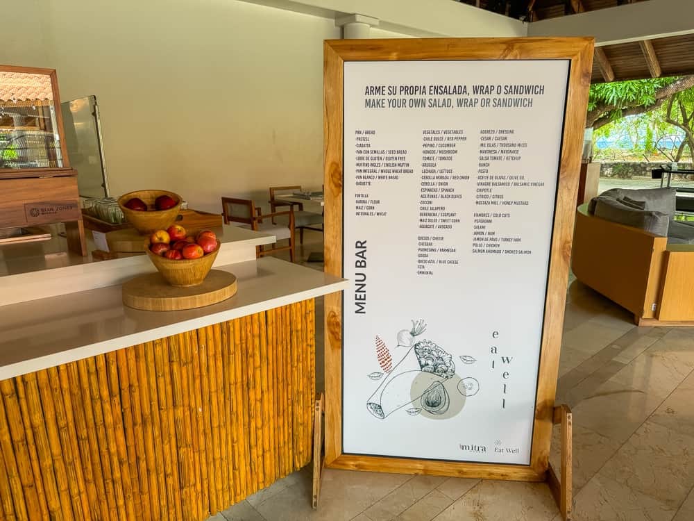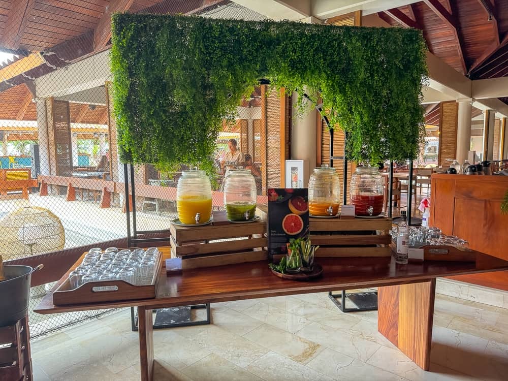 Pendant que la réceptionniste remplissait les formalités d’enregistrement, un serveur est venu nous offrir des jus de fruits frais afin de nous rafraîchir. Étant donné que l’hôtel est en formule tout inclus, le petit déjeuner, les repas du midi et du soir ainsi que les boissons et les cocktails sont offerts à volonté.